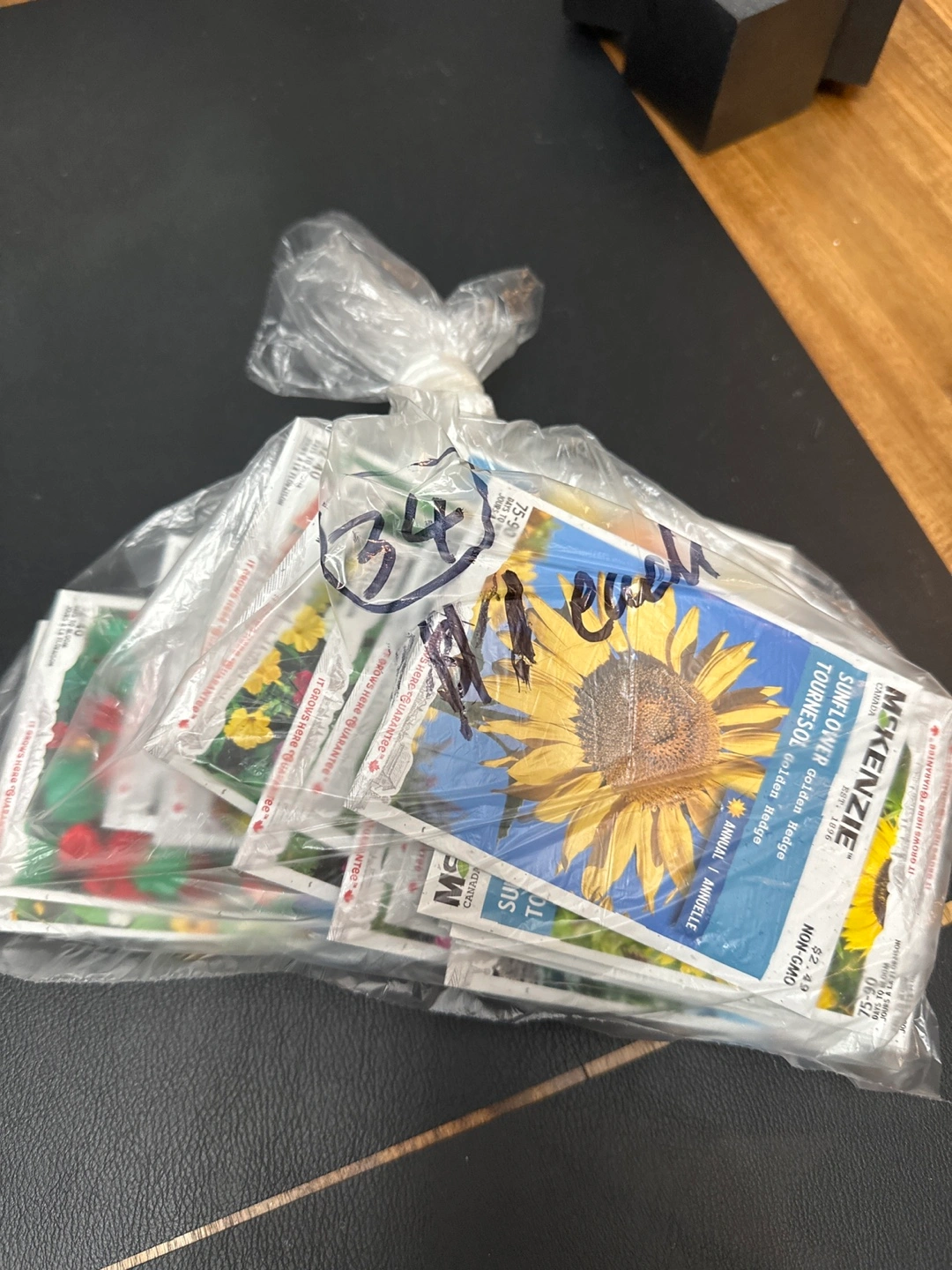 I have a bag of McKenzie Sunflower seeds, Golden Hedge variety, for sale! Each packet is marked at $2.49. Perfect for your garden this spring!