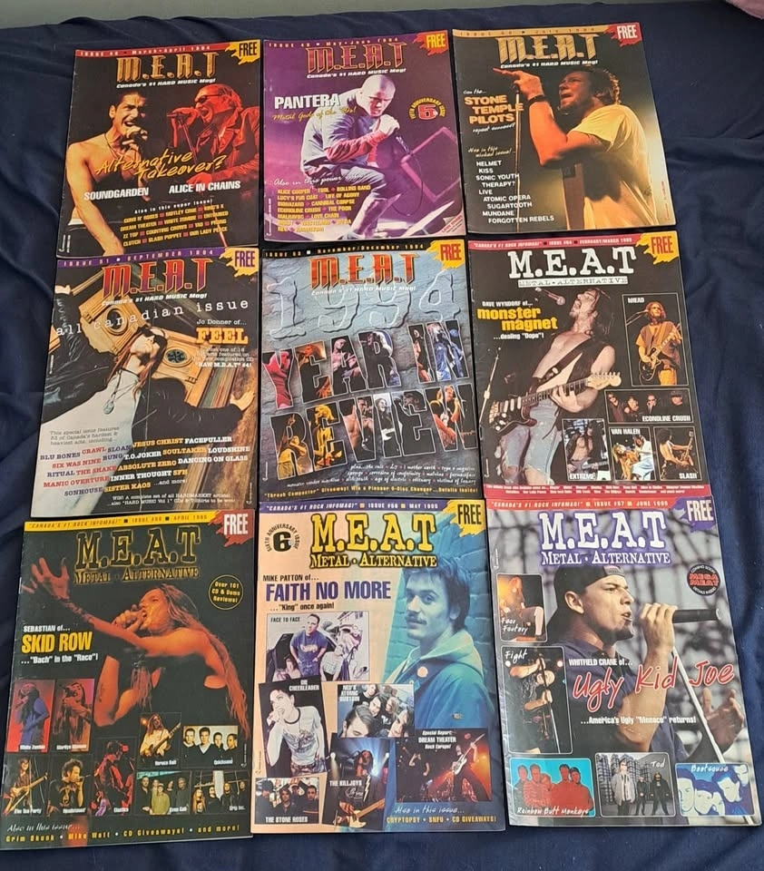Very rare collection of M.E.A.T. Magazine from the 90's. All in good shape apart from some minor wear. You won't find a grouping of this many issues in one listing, so don't miss out if you're a metal/hard rock magazine collector. Willing to sell some issues separately if you're a serious buyer. Please contact for that and/or to make an offer on the collection.
