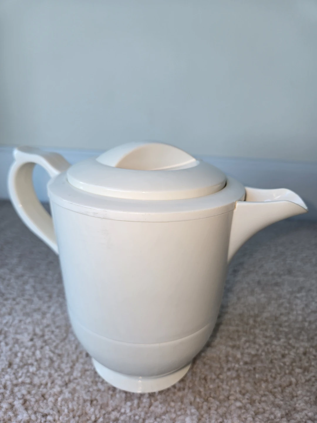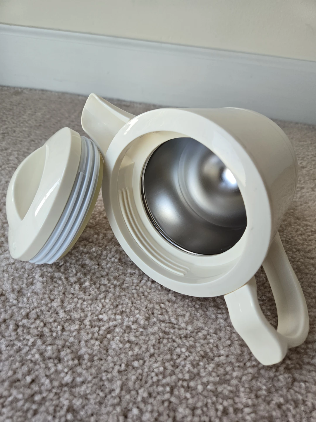 I'm selling a cream-colored thermal carafe. The size is 2 cups or 16 oz. It's in good condition and ready to keep your beverages hot or cold. It has a classic design that would look great in any kitchen or dining room. Perfect for serving coffee, tea, or any other beverage you like. Cash and carry only please.