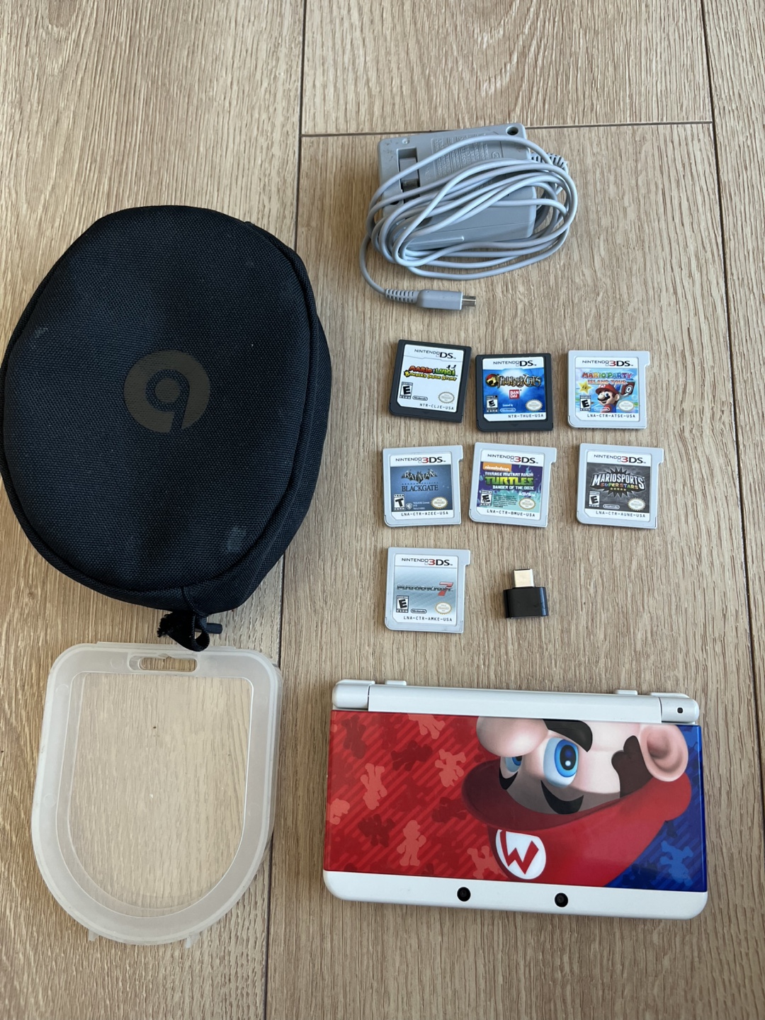 Selling a Nintendo 3DS Mario Edition console with a bunch of games and accessories! It comes with a charger, a Beats carrying case, and a clear case. There are also several game cartridges included: