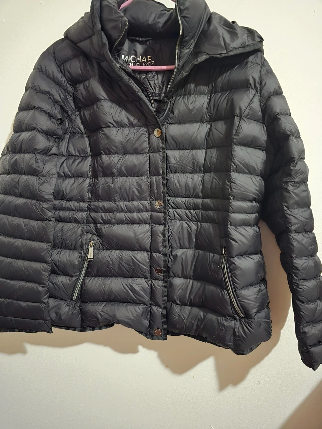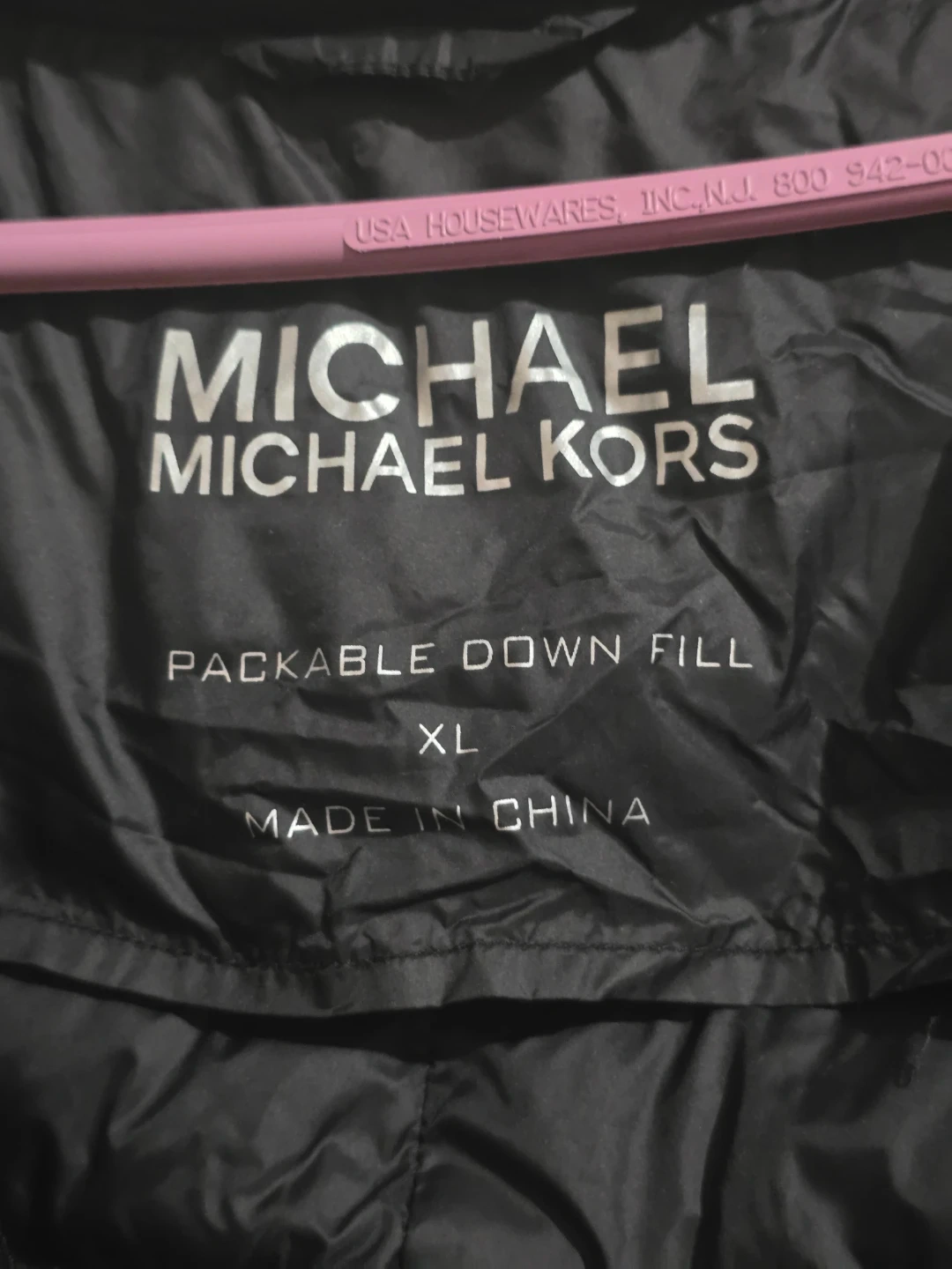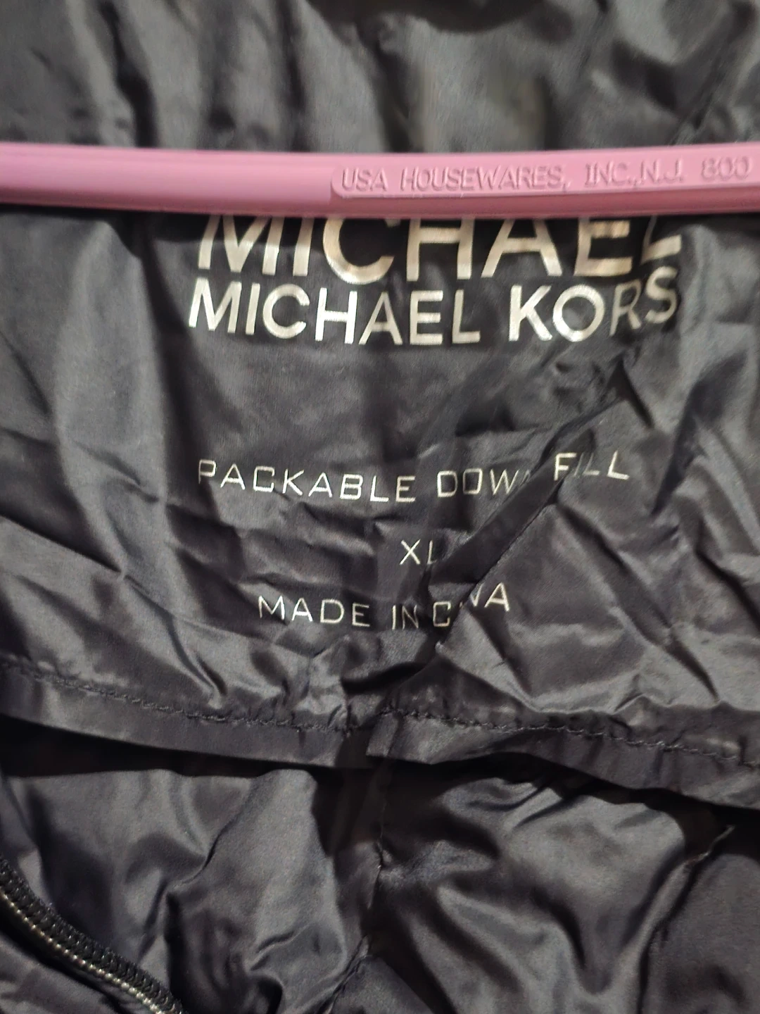 Selling a Michael Kors packable down puffer jacket in size XL! It's a stylish and practical outerwear piece, perfect for staying warm and comfortable. The jacket is black and features a packable design, making it easy to carry and store when not in use