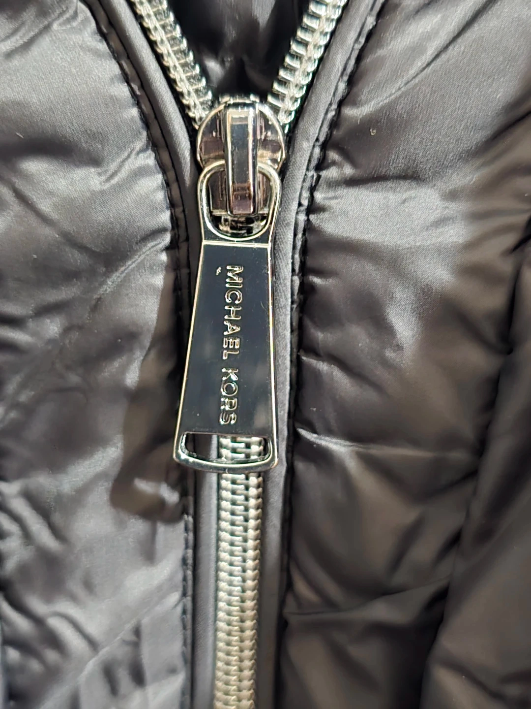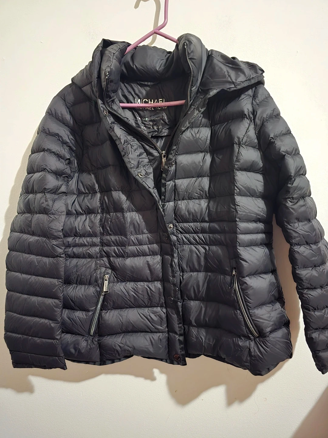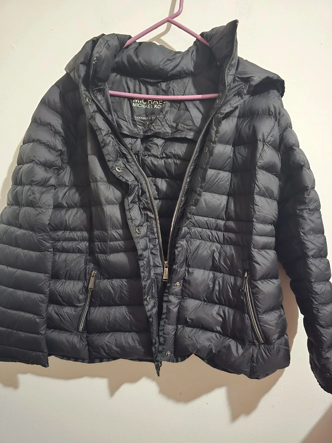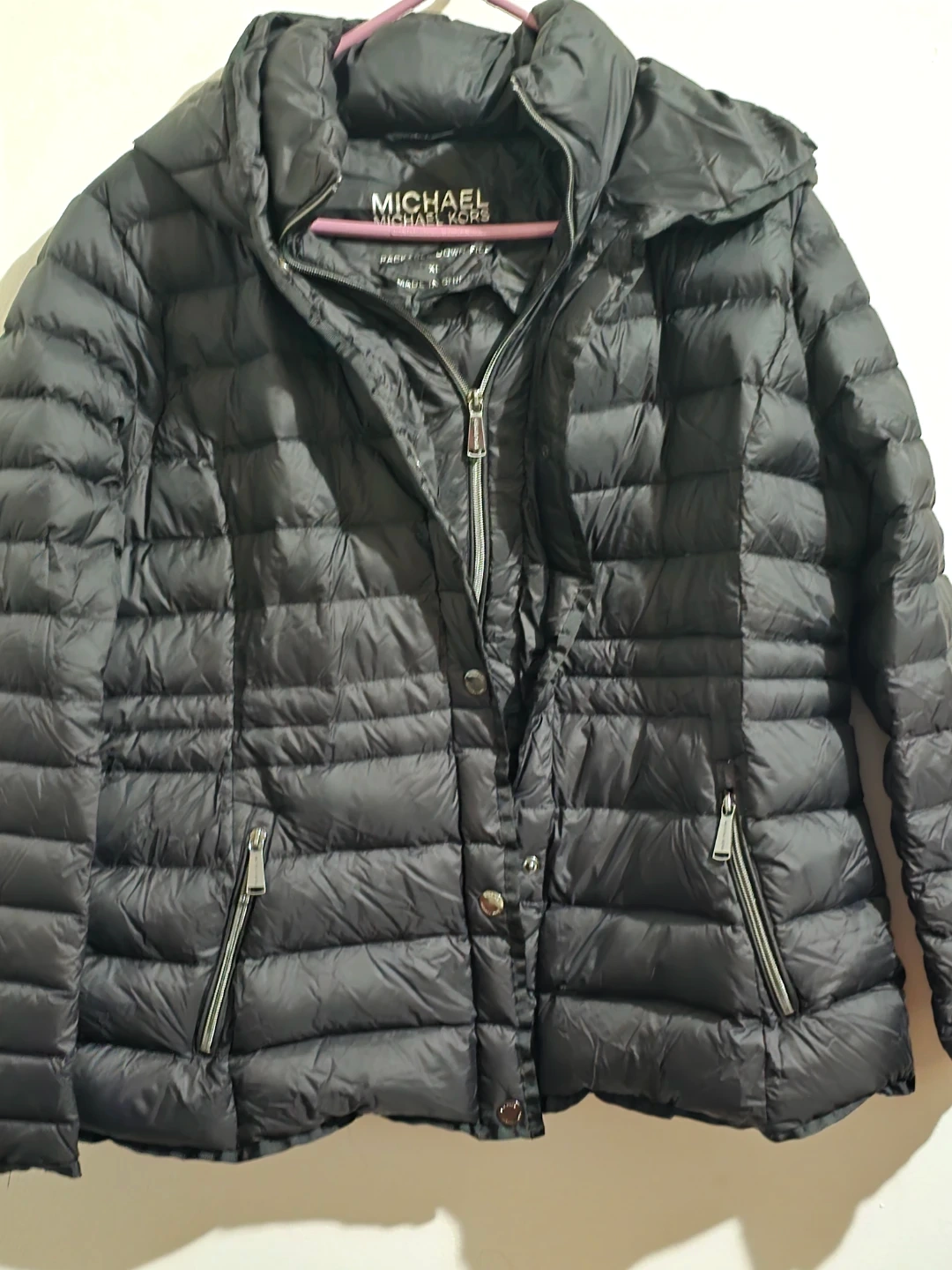 Selling a Michael Kors packable down puffer jacket in size XL! It's a stylish and practical outerwear piece, perfect for staying warm and comfortable. The jacket is black and features a packable design, making it easy to carry and store when not in use