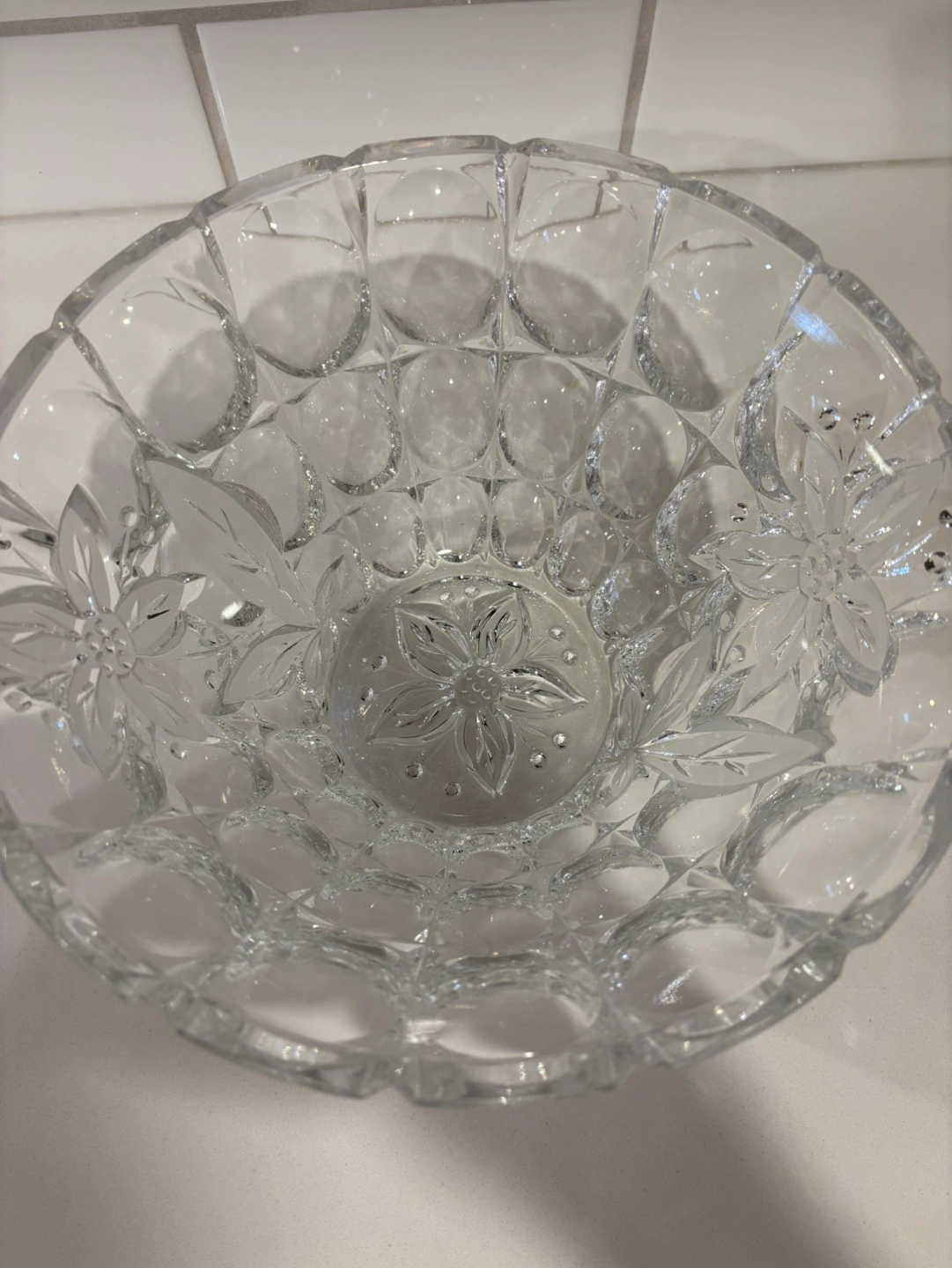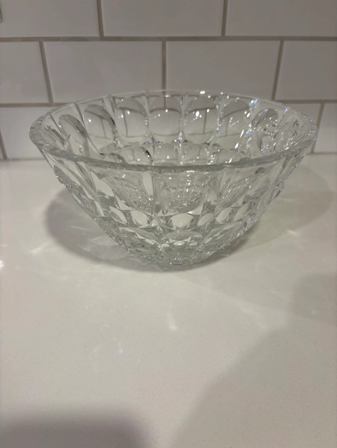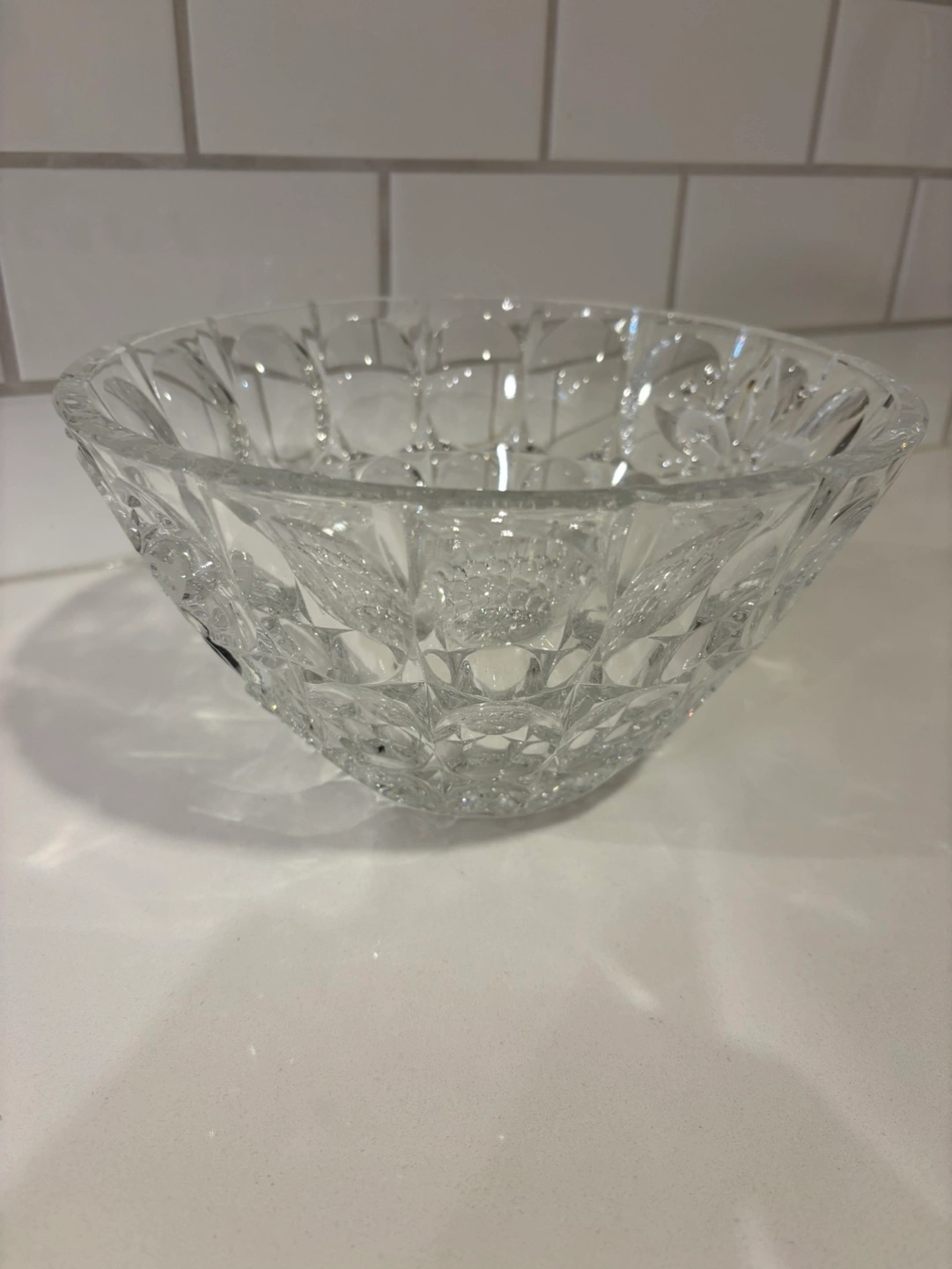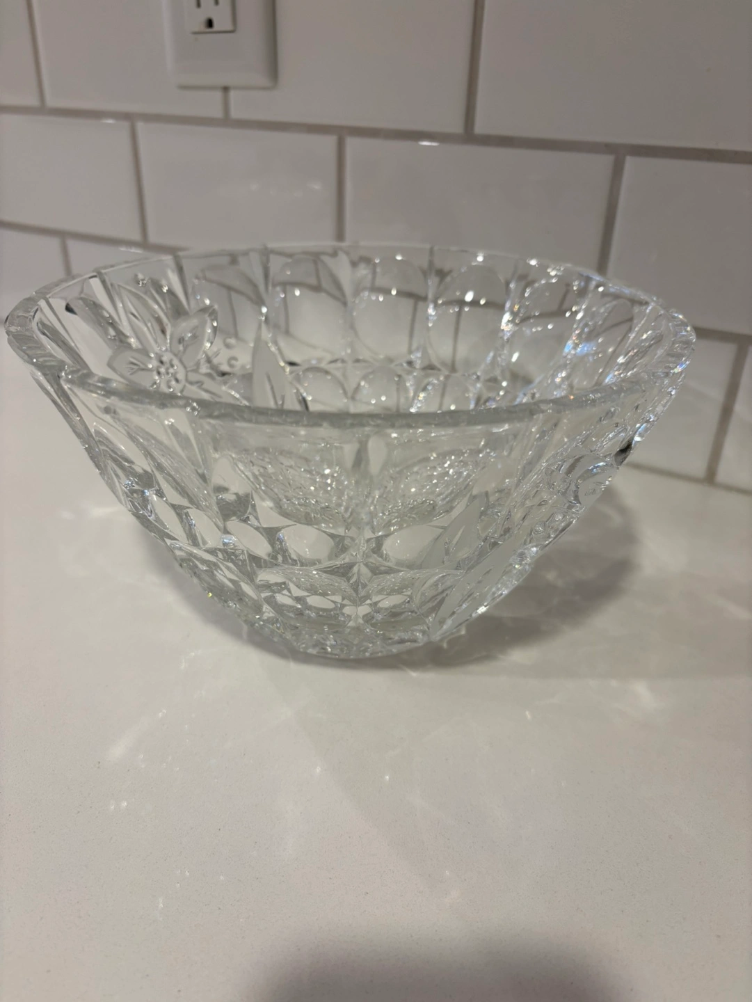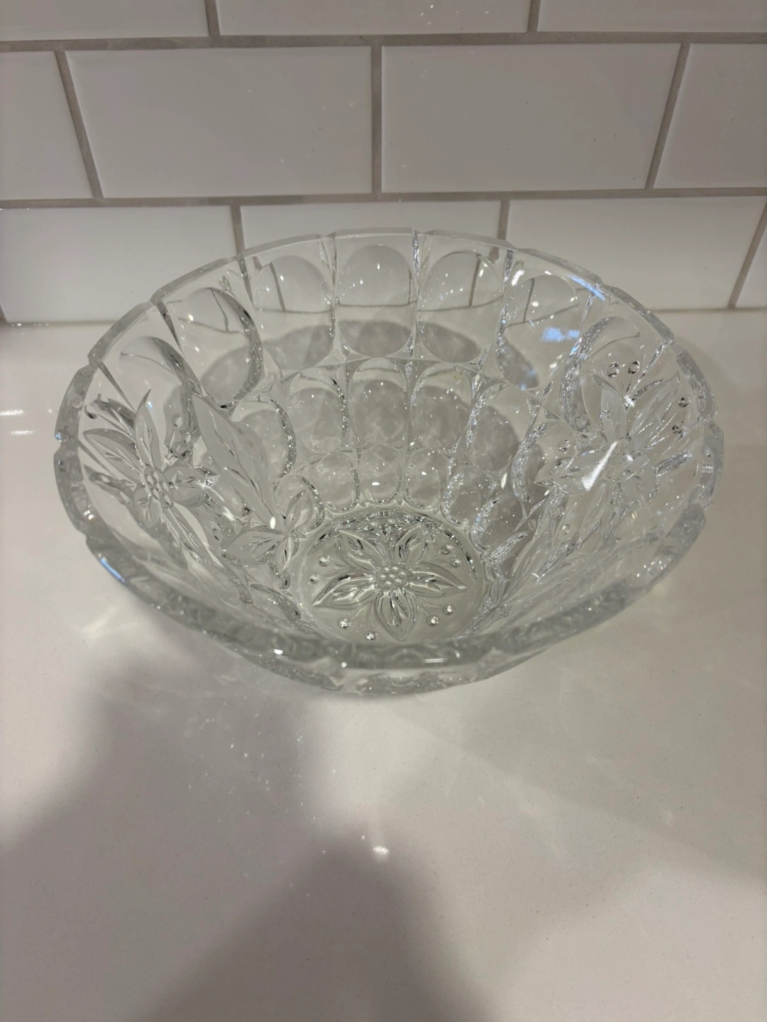 Vintage Floral Design Crystal Bowl For Sale. Excellent - like new condition. 8.75” in diameter. 4.5” high. East Regina pick up. Listed on other sites.