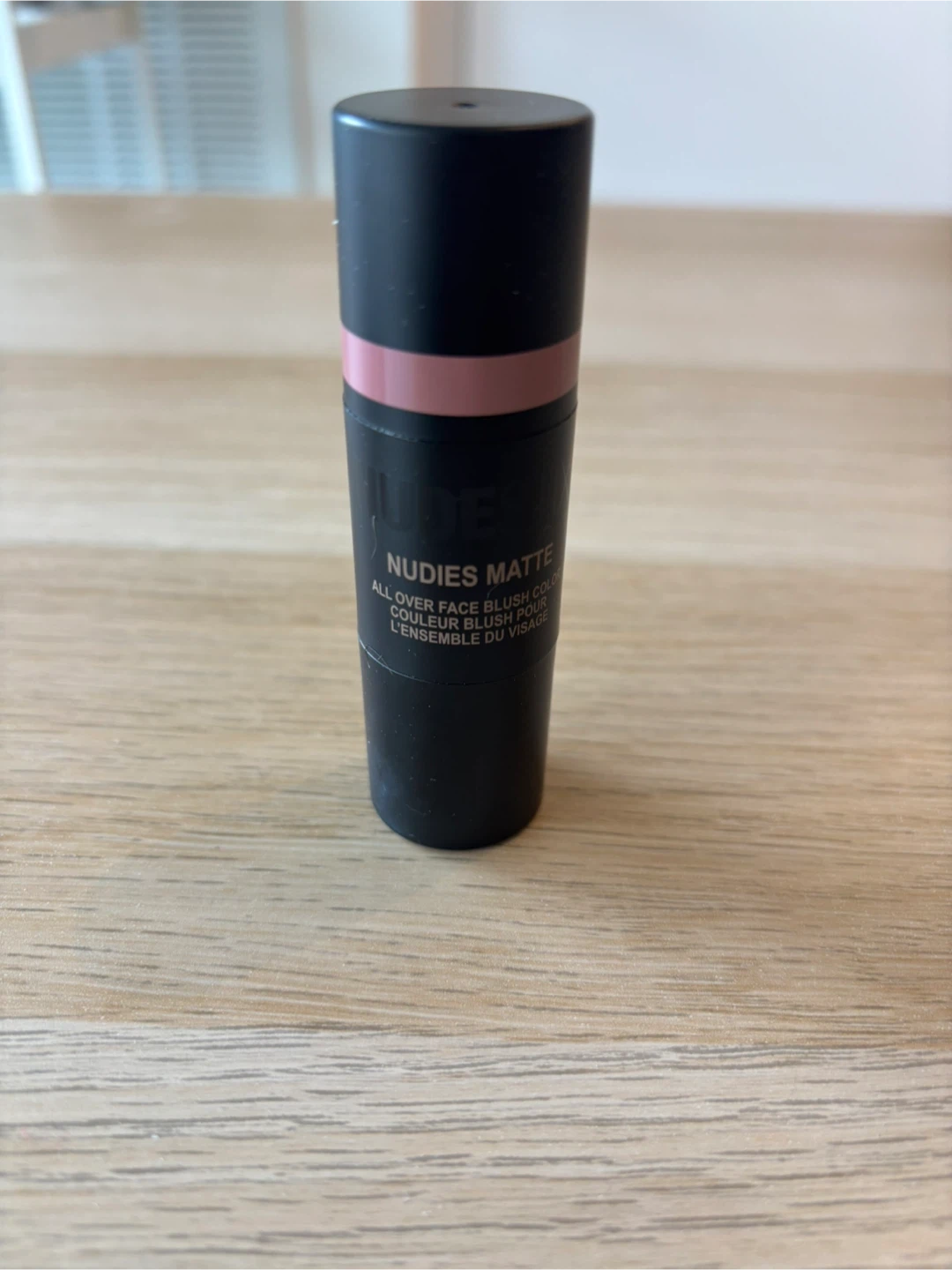 This is a NUDESTIX Nudies Matte All Over Face Blush Colour stick. It's a matte finish blush for cheeks, lips, and eyes. The colour is a lovely pink shade.