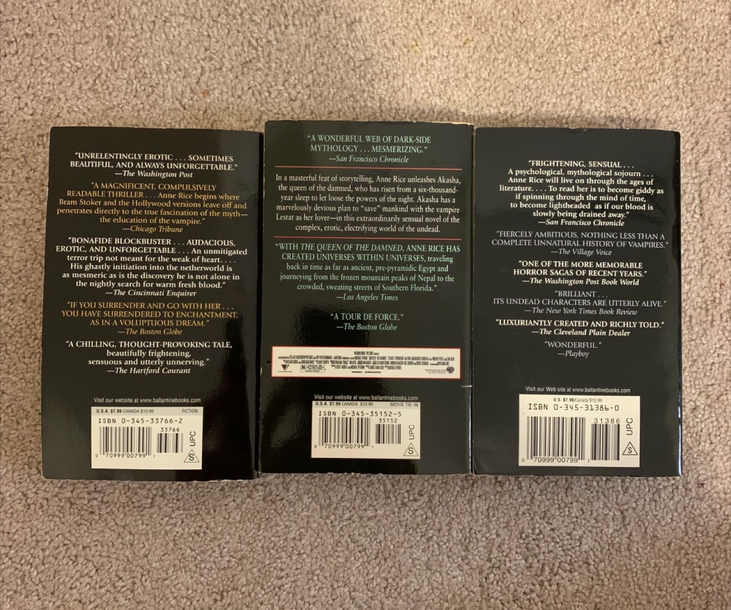 Selling three books from Anne Rice's Vampire Chronicles series: