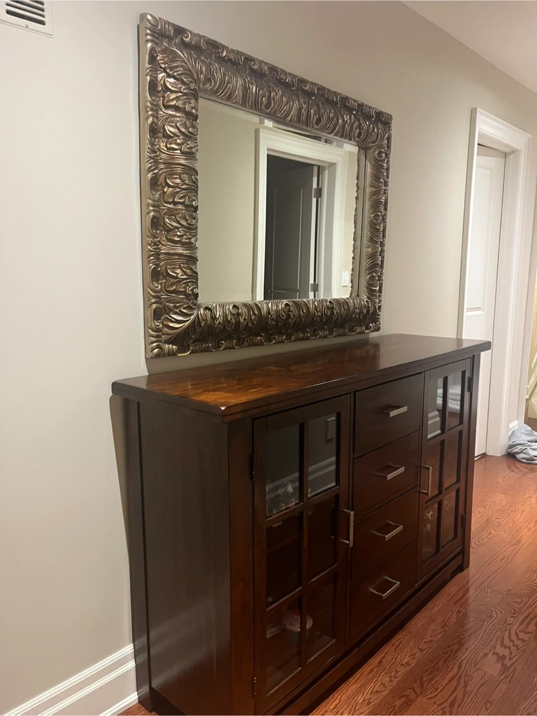 Dark Wood Sideboard with Mirror