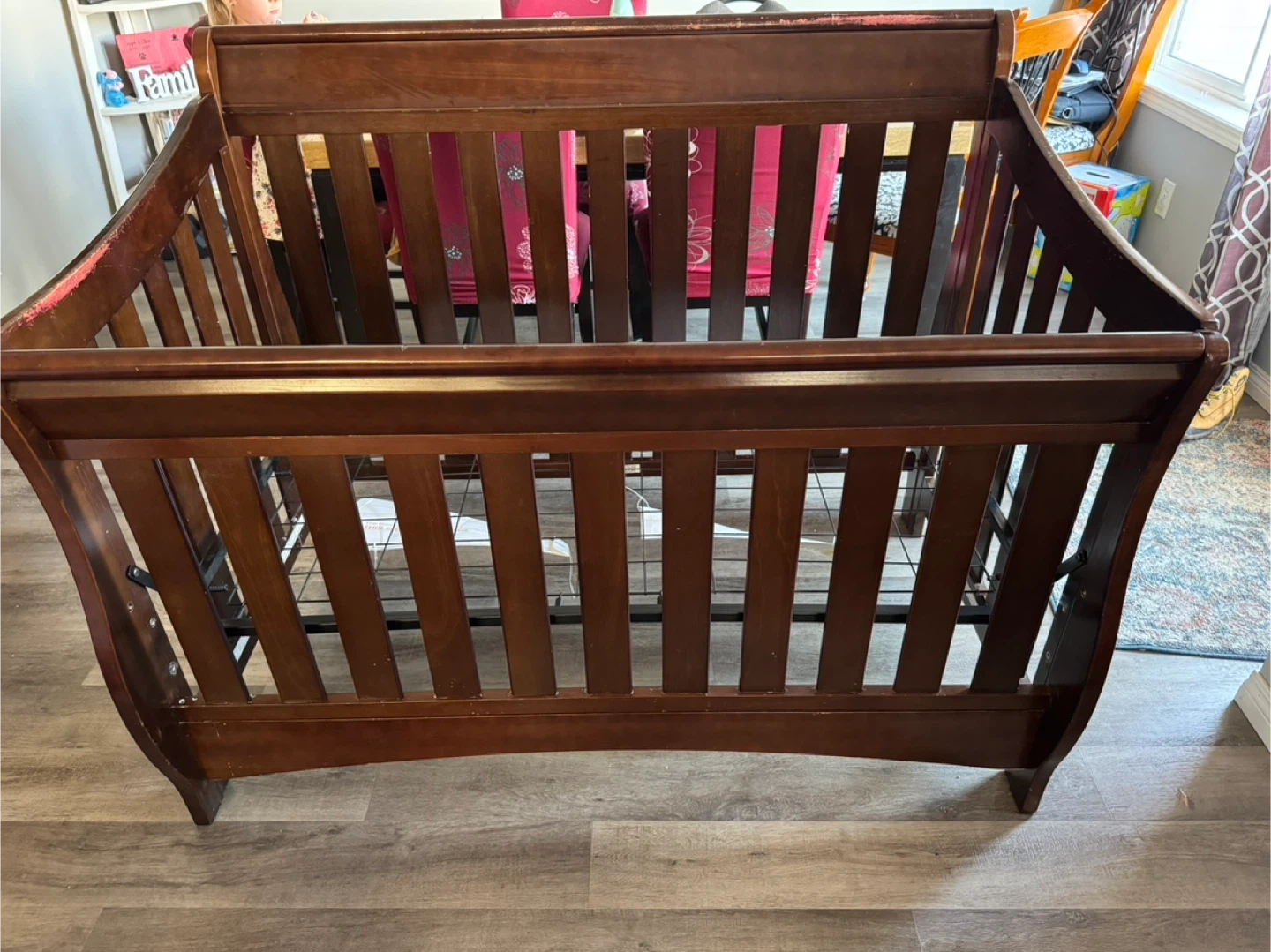 Buy & SellWooden Crib with MattressWooden Crib with Mattress$50This is a dark wood crib. It includes a white mattress wrapped in plastic. Crib dimensions are standard for a baby's bed.ConditionGoodWHERE TO MEETCheck LocationView MapSELLERJessicaLuxstone100 reviews0 chats·0 favorites·2 viewsSEND CHAT TO SELLERHi Jessica! I’m interested in your listing.Hi Jessica! I’m interested in your listing.Get the Karrot app to chatSign In to chat