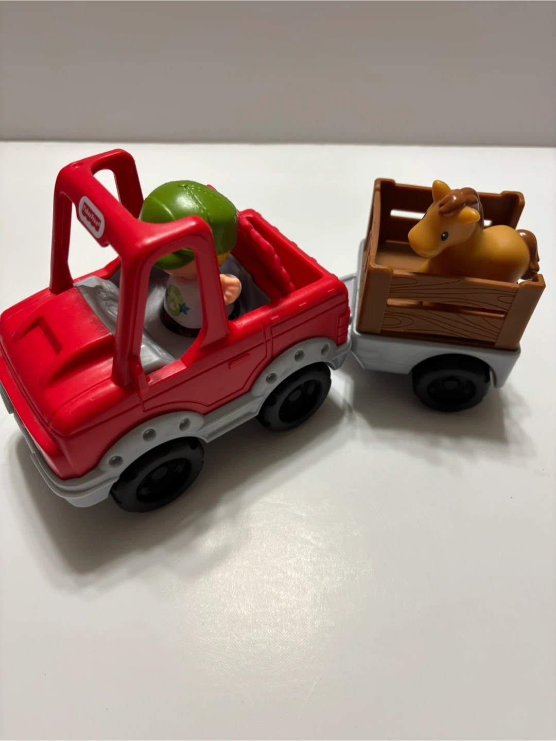 Here's a cute Fisher-Price Little People red truck with a horse trailer! It's in great shape and ready for a new adventure. Perfect for little hands and imaginative play