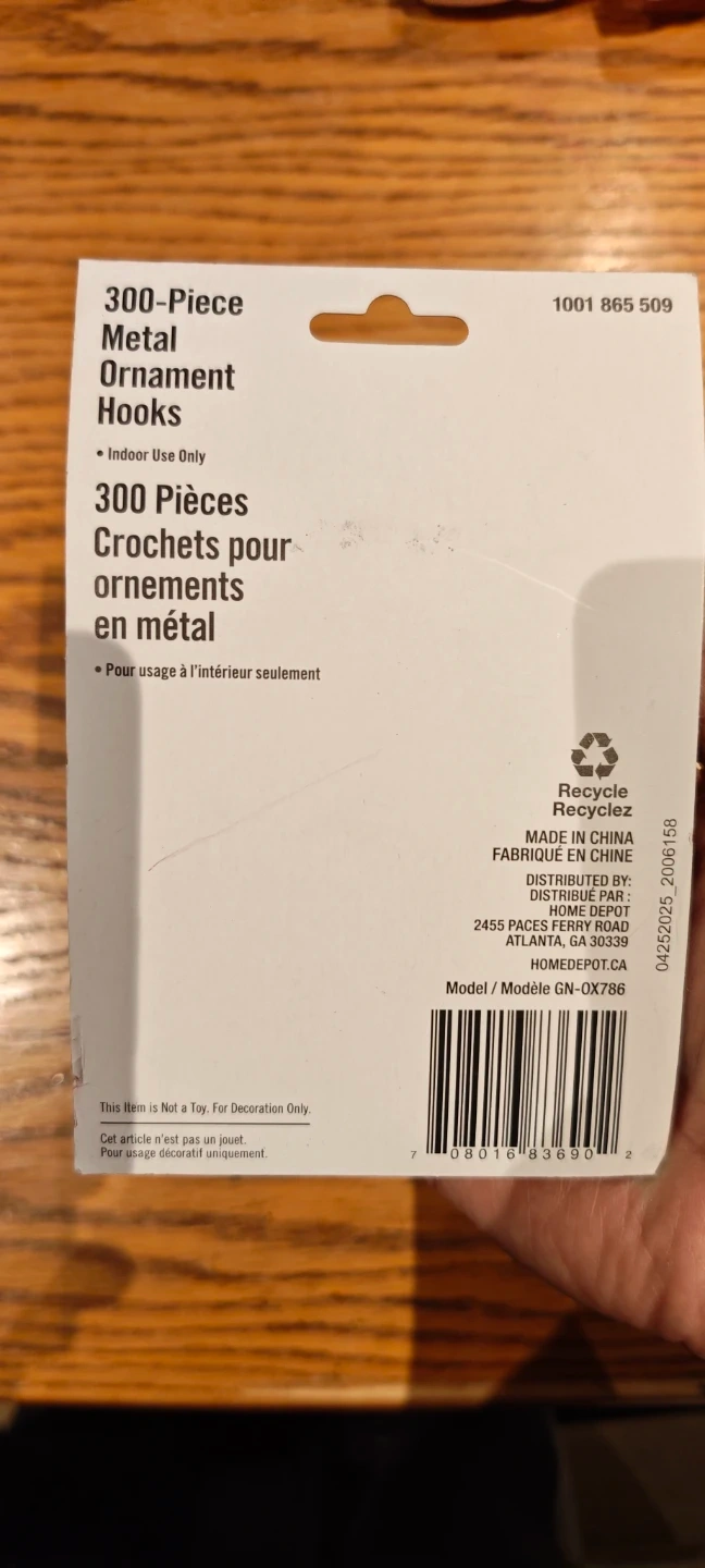 This package contains 300 metal ornament hooks. They are intended for indoor use only. These hooks are suitable for hanging Christmas ornaments or other small decorative items.