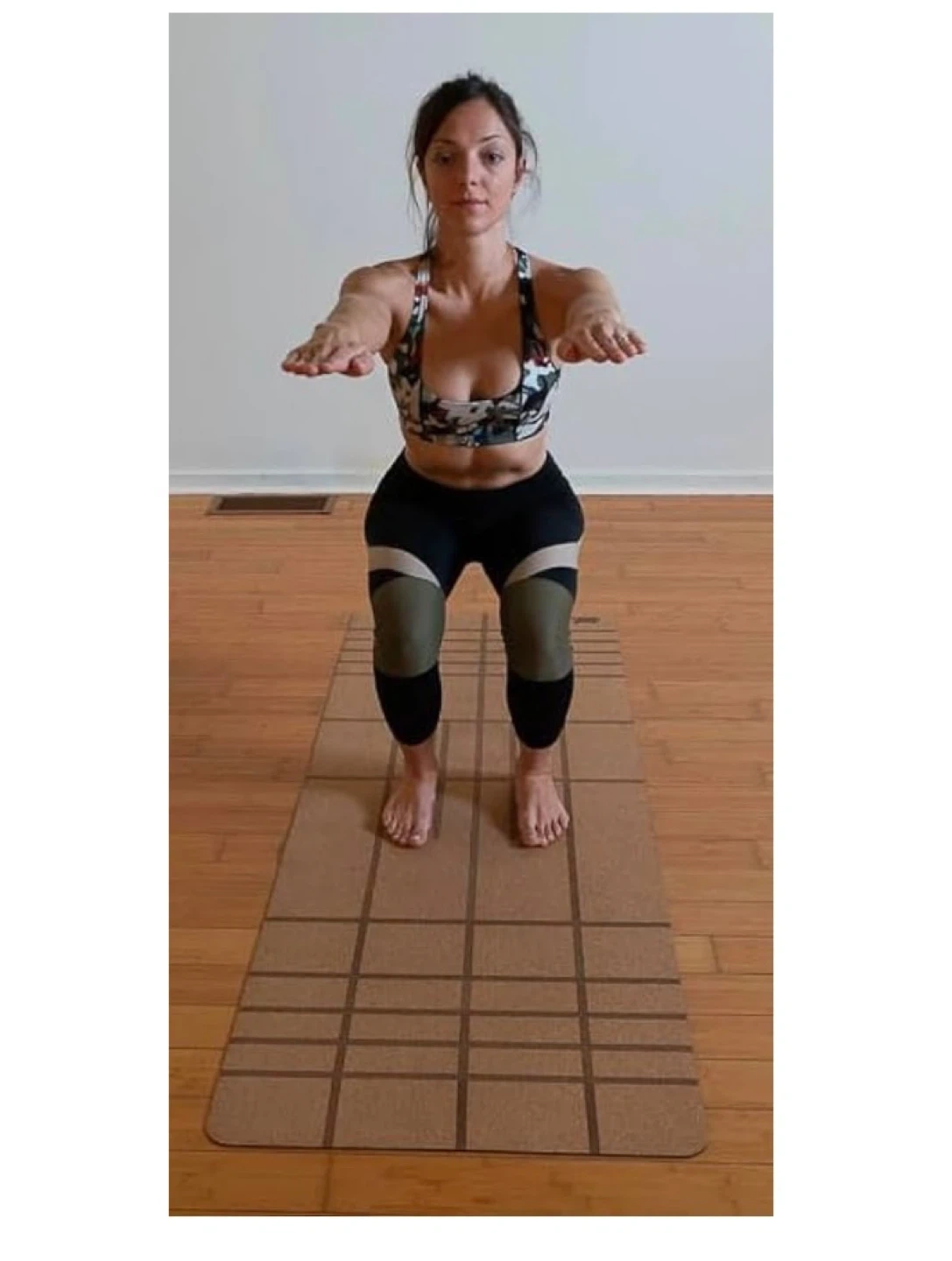 This Sweat Matterz yoga mat is made from natural cork and features an anti-slip design. It has alignment lines to help with pose positioning. Non-toxic materials.