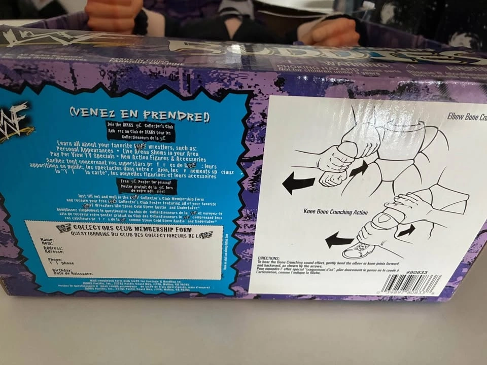 This is a 1998 JAKKS Pacific Undertaker action figure from the WWE franchise, part of the Bone Crunchin’ Buddies series. The figure is boxed and features an oversized design with adjustable parts, made of plush and plastic. It stands 16 inches tall and is a 1:4 scale replica. A great vintage item for wrestling fans, collectors, and kids alike.