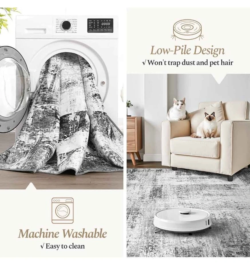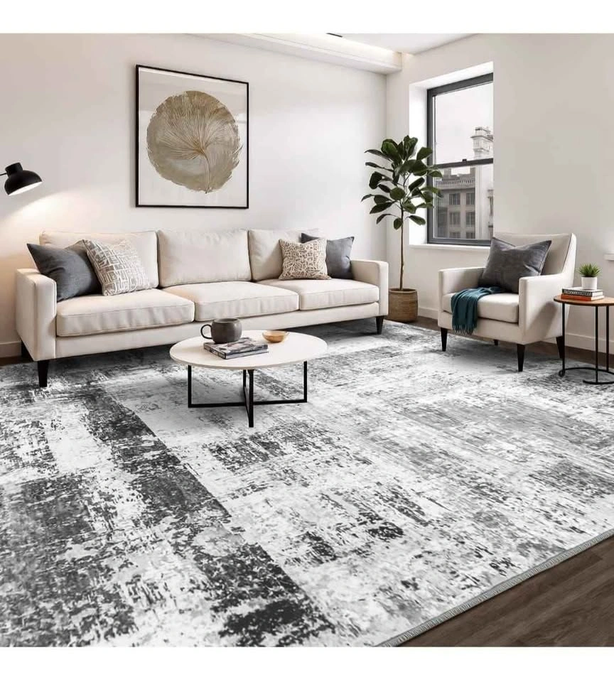 9x12 Large Area Rugs for Living Room, Abstract Washable Rug, Non-Slip, Stain Resistant, Soft Low Pile Carpet, Indoor Grey Rug for Bedroom, Dining Room, Home Office #3