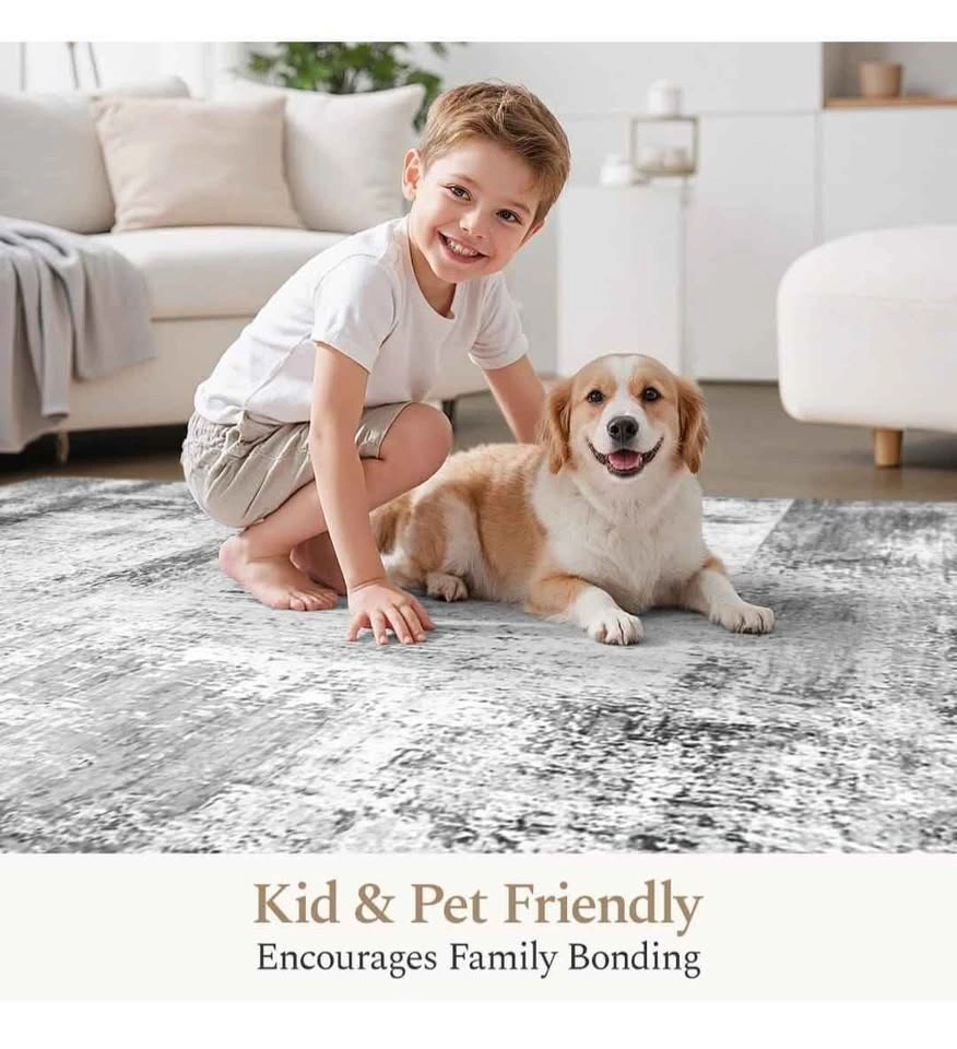 9x12 Large Area Rugs for Living Room, Abstract Washable Rug, Non-Slip, Stain Resistant, Soft Low Pile Carpet, Indoor Grey Rug for Bedroom, Dining Room, Home Office #3