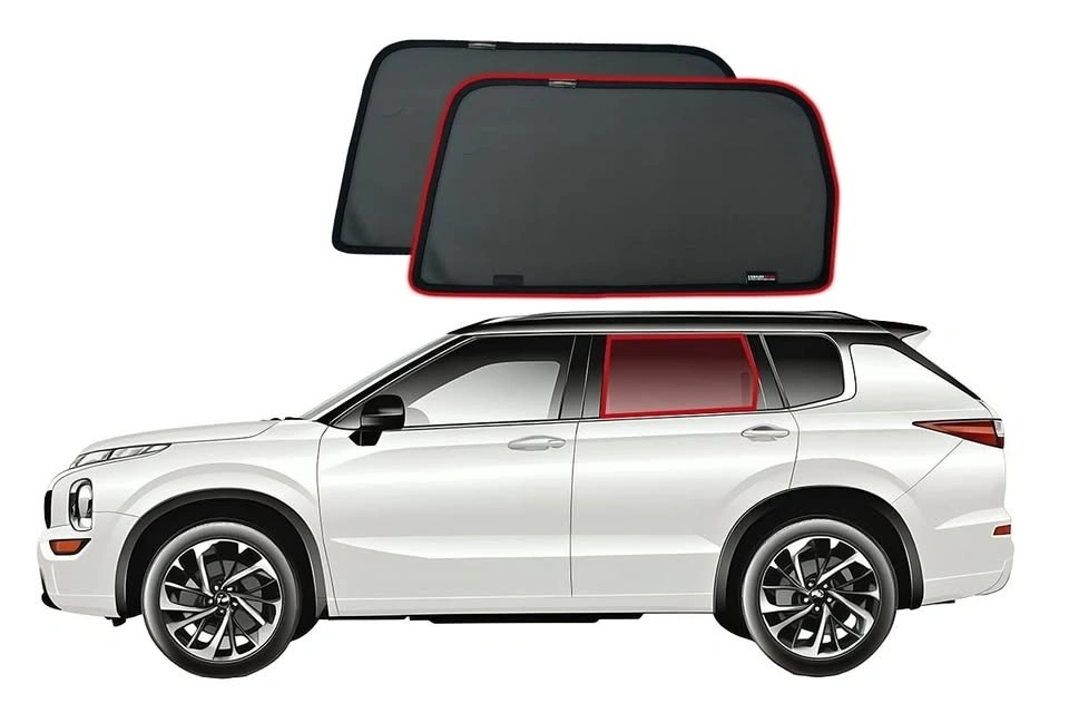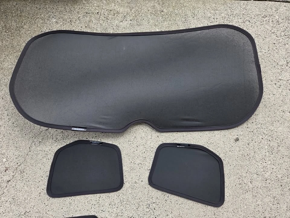 Full rear passenger compartment window shades. Purchased these so we could open our windows and still have protection from bugs and have a nice breeze. Rear door windows are authentic magnetic Snapshades, the rear 3/4 and rear window are off-brand. Selling because we sold our Outlander.