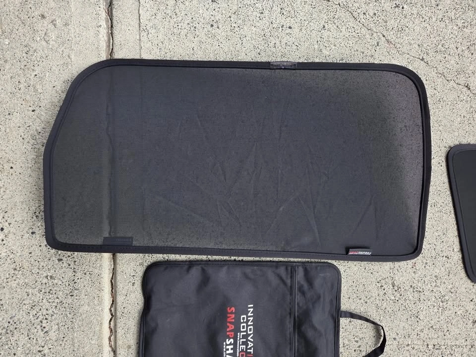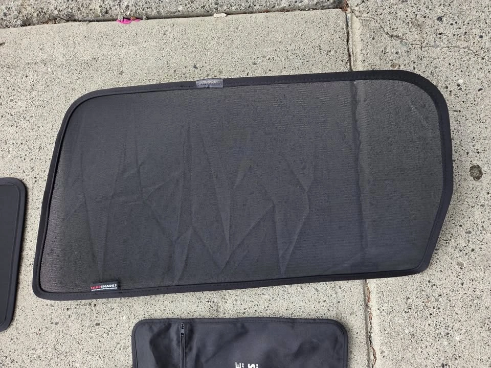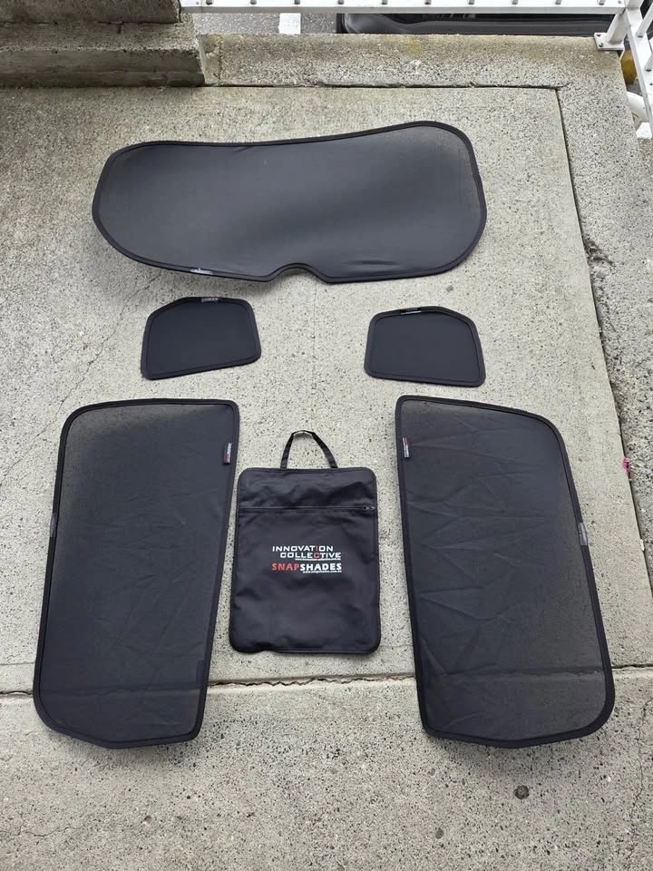 Full rear passenger compartment window shades. Purchased these so we could open our windows and still have protection from bugs and have a nice breeze. Rear door windows are authentic magnetic Snapshades, the rear 3/4 and rear window are off-brand. Selling because we sold our Outlander.