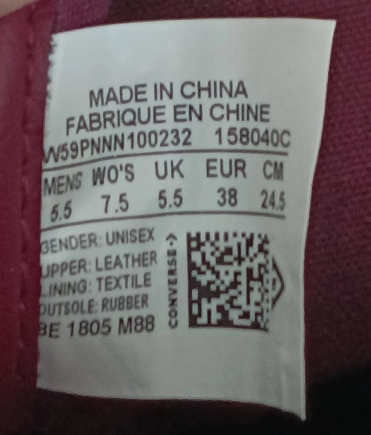 Unisex sizing: Men’s 5.5 / Women’s 7.5 (EU 38).
