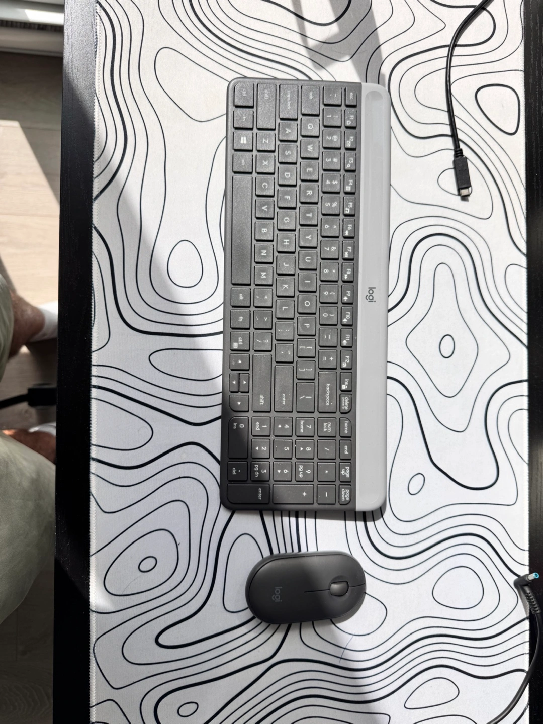Wireless keyboard and mouse combo. Compact keyboard, great for small spaces. Works well, minimal wear. Includes USB receiver, new batteries and the box.