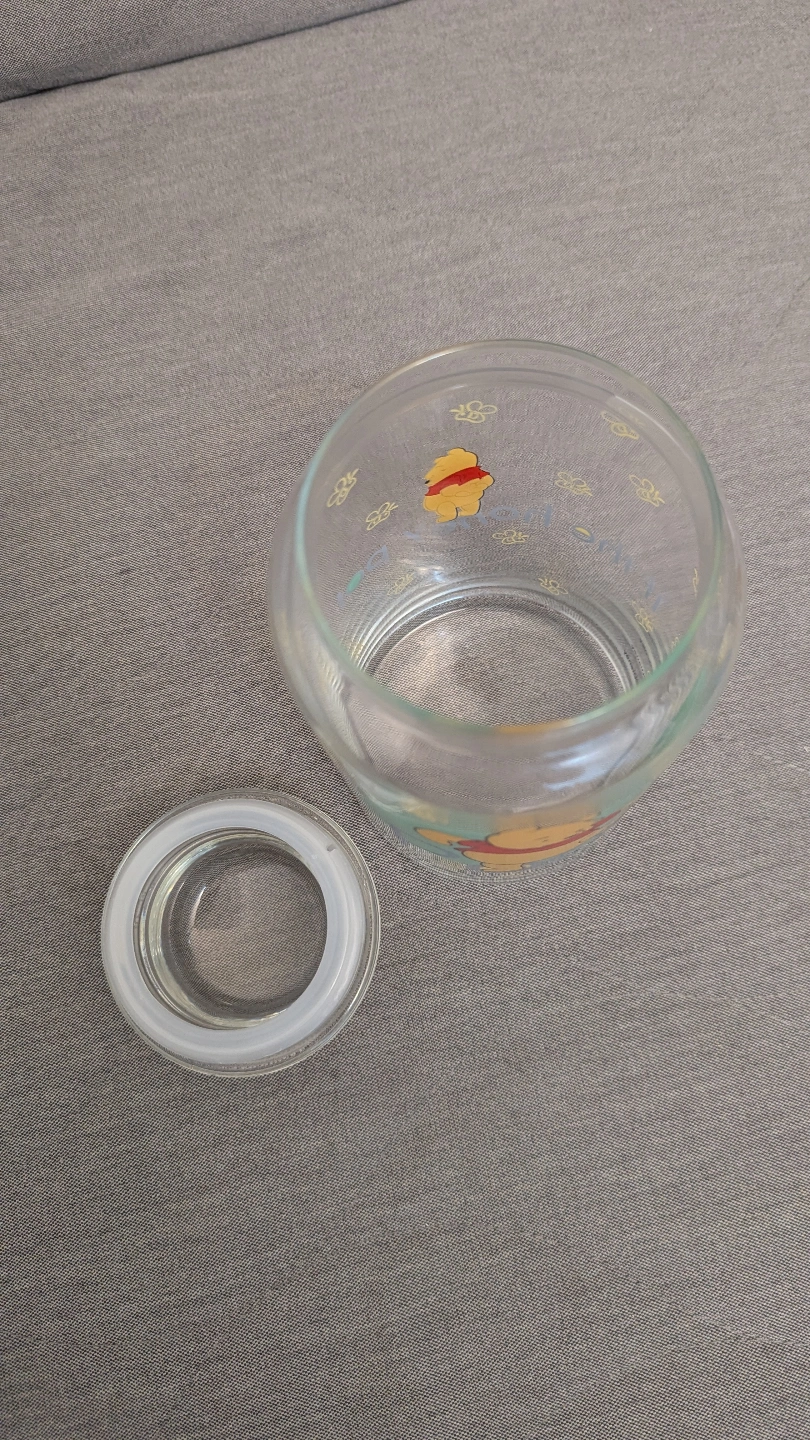 Vintage clear glass jar, likely from late 1980s or early 1990s and manufactured by Anchor Hocking Company and licensed by Disney.