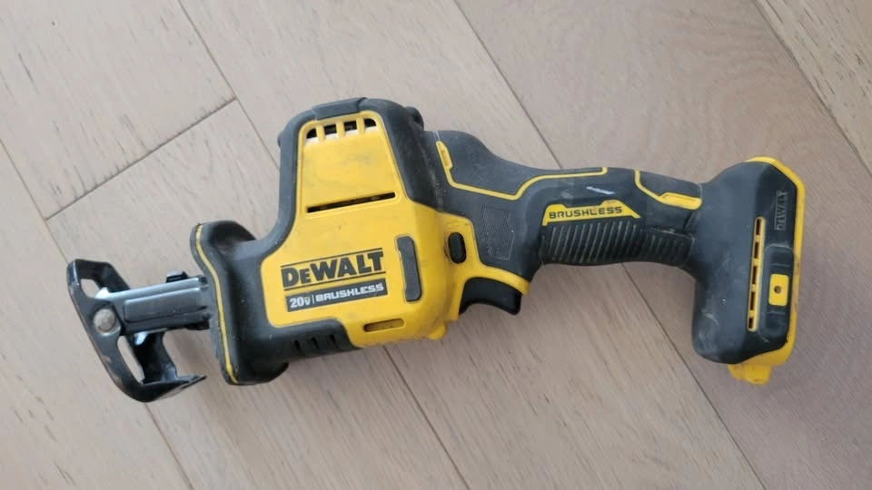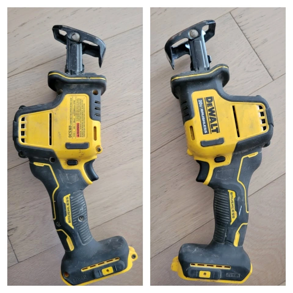 DeWalt DCS369 20V XR compact reciprocating saw in excellent working condition. This is the one-handed model—perfect for tight spaces, quick cuts, and overhead work. Very lightweight but still powerful.