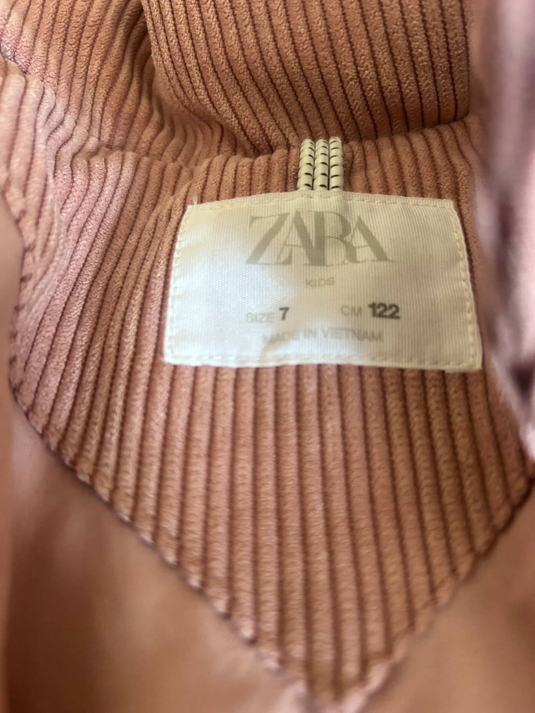 Zara Kids Pink Corduroy Puffer Jacket Size 7/122cm