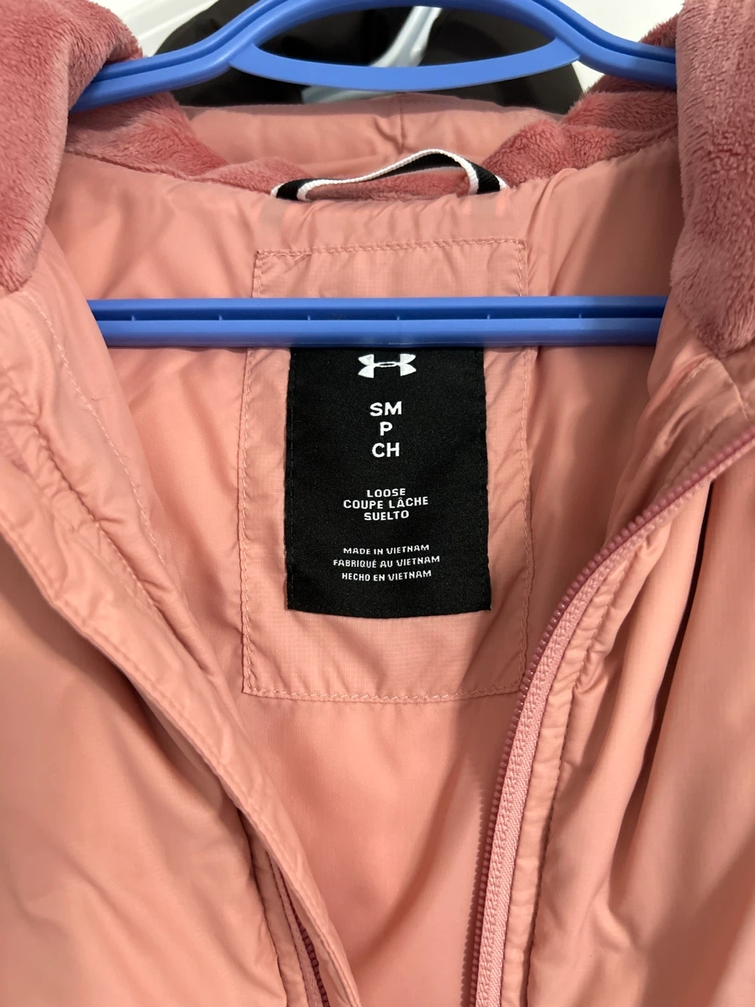 Under Armour puffer jacket in a lovely pink colour! It's a size small. Perfect for staying warm and stylish during the colder months!