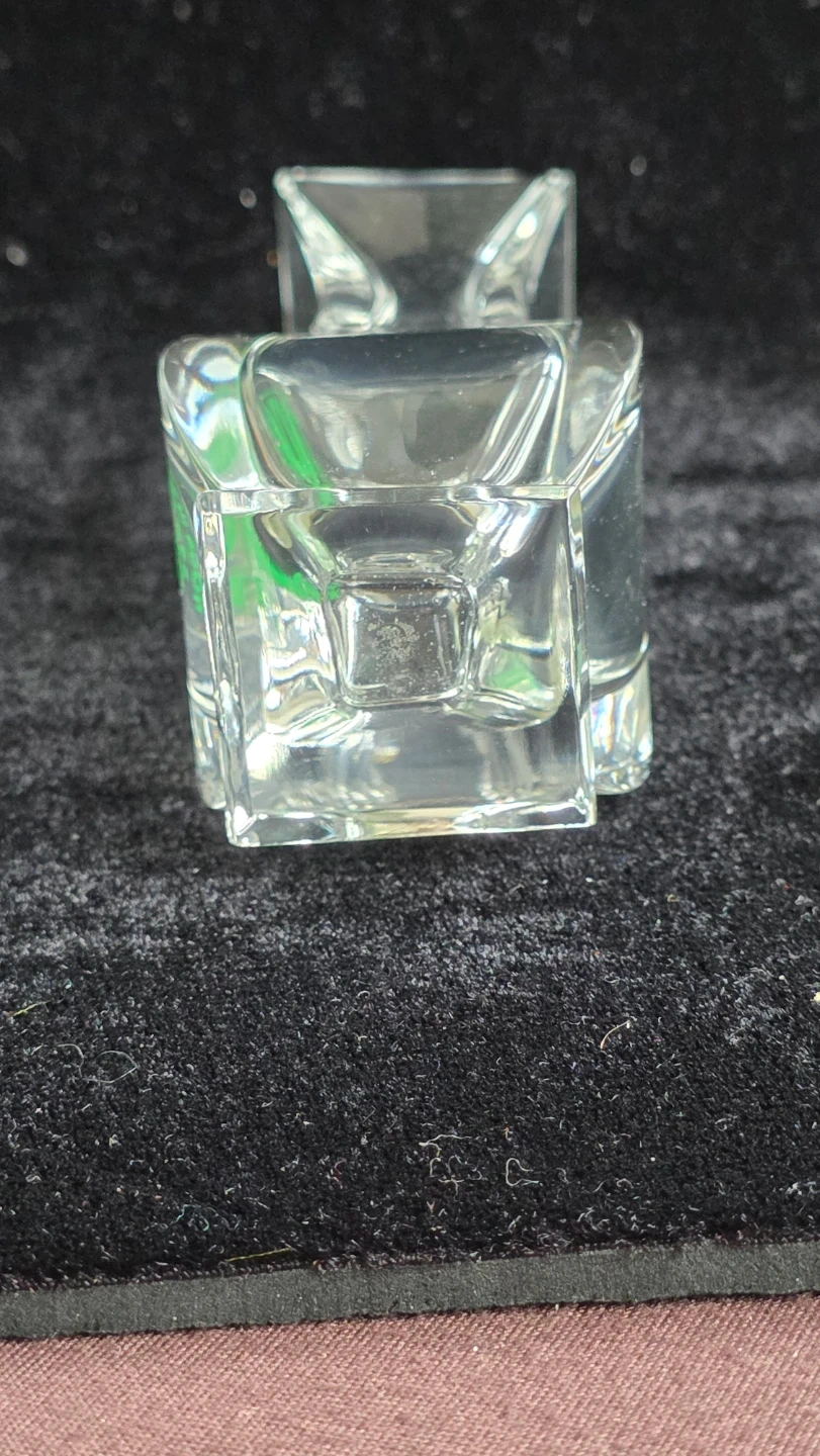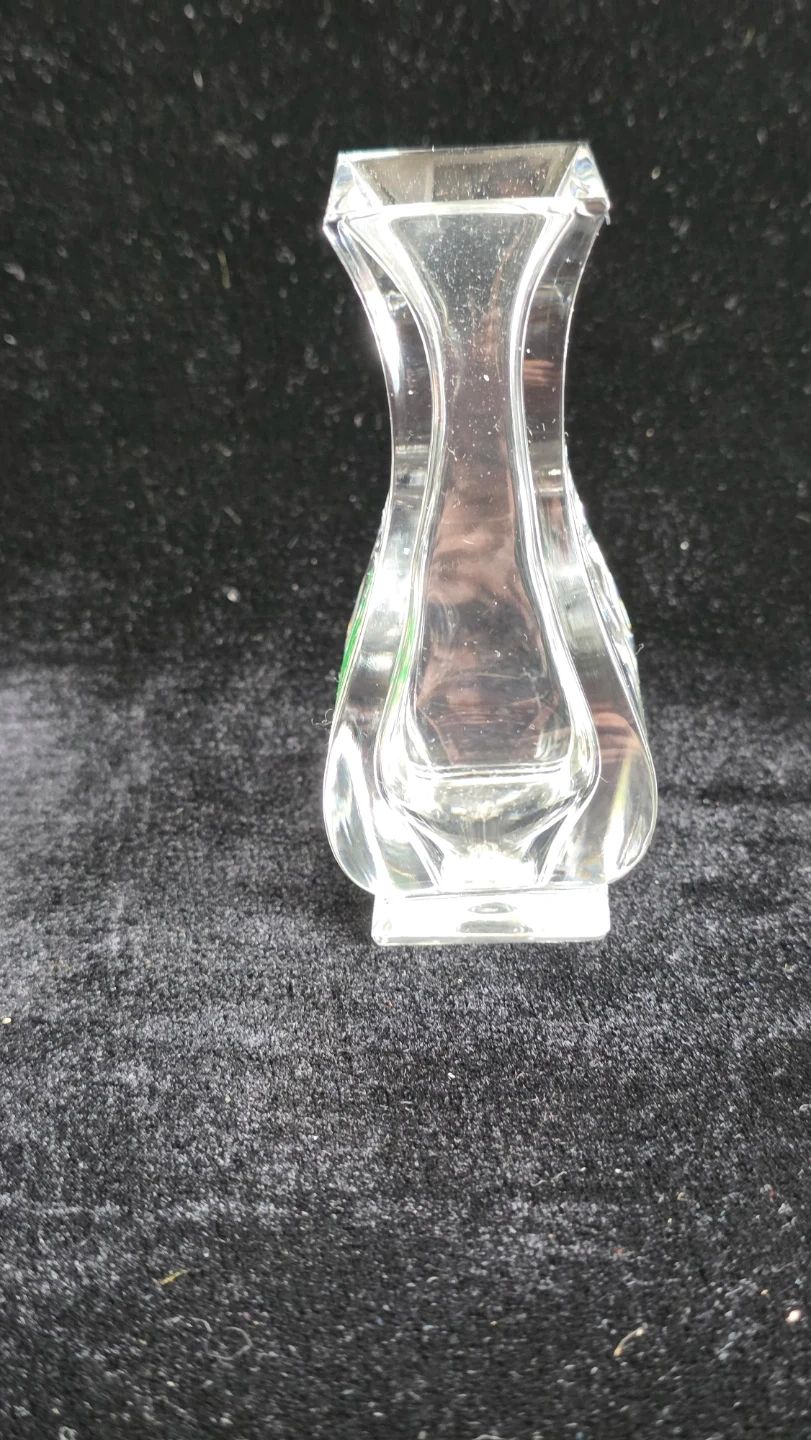 This is a clear glass bud vase from Kristalcolor. It's made of 24% Pbo glass and was manufactured in Italy. It's a lovely little piece for a single stem flower!