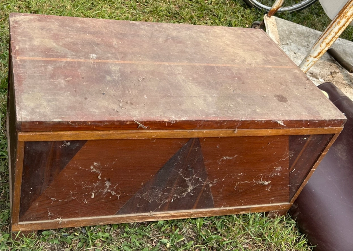 Selling a vintage wooden storage box! It has a unique design and a lot of character. Perfect for storing blankets, toys, or anything else you need to keep organized. It's a solid piece that would look great in any home
