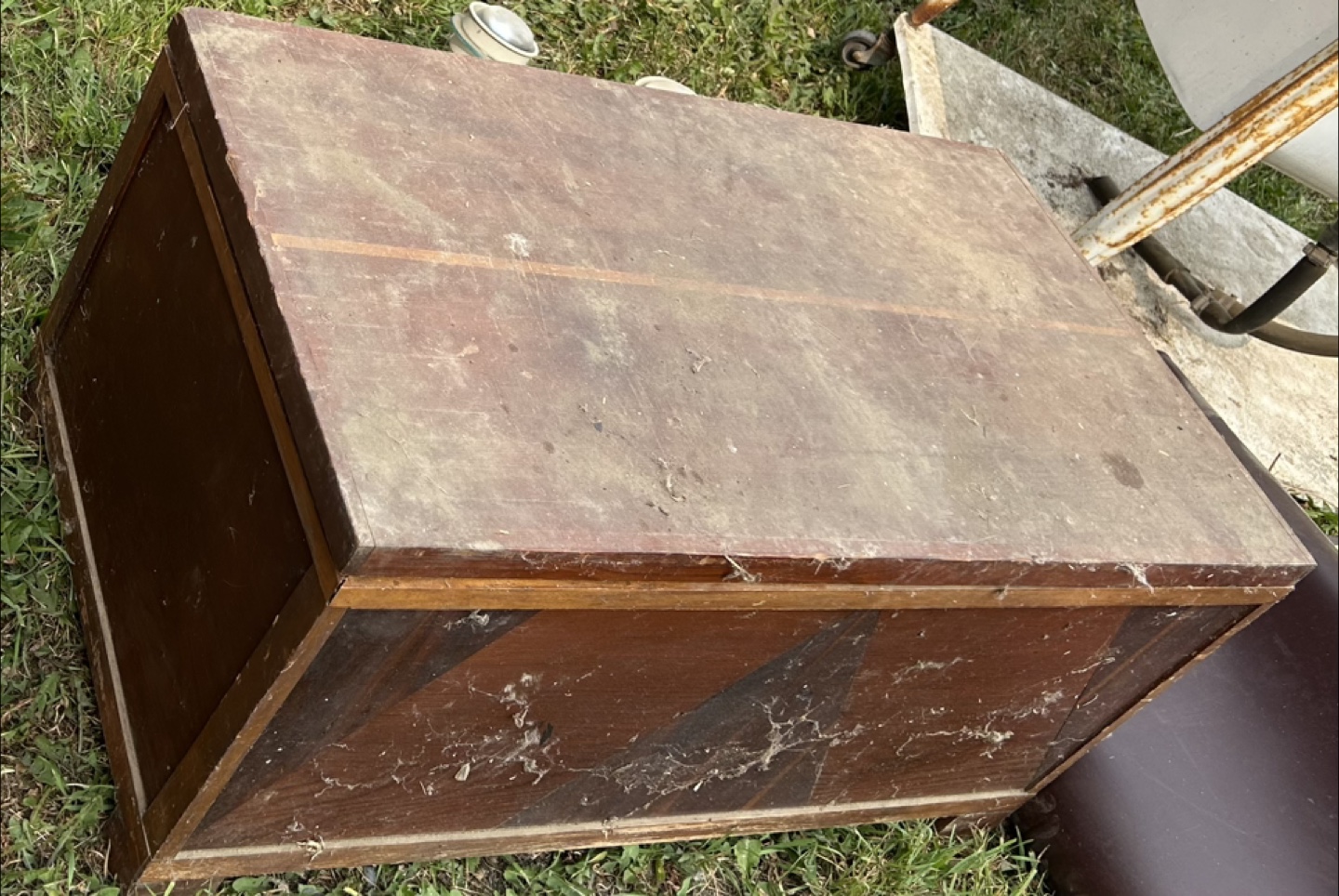 Selling a vintage wooden storage box! It has a unique design and a lot of character. Perfect for storing blankets, toys, or anything else you need to keep organized. It's a solid piece that would look great in any home