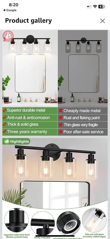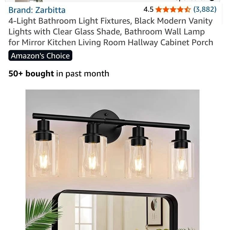 Buy & SellNew 4-Light Bathroom Light FixturesNew 4-Light Bathroom Light Fixtures$65Black modern vanity lights with clear glass shade. Suitable for bathrooms, mirrors, kitchens, living rooms, hallways, cabinets, and porches.WHERE TO MEETCheck LocationView MapSELLERverifiedShirinBrock Ridge25116 reviews0 chats·1 favorites·7 viewsSEND CHAT TO SELLERHi Shirin! I’m interested in your listing.Hi Shirin! I’m interested in your listing.Get the Karrot app to chatSign In to chat
