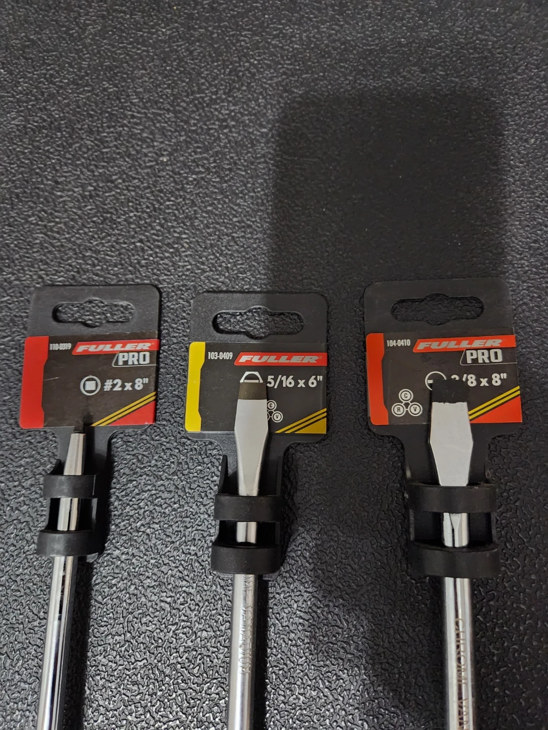 Selling a set of Fuller Pro screwdrivers. They're in excellent condition and ready for a new home. Includes a #2 x 8", a 5/16 x 6", and a 3/8 x 8" screwdriver.