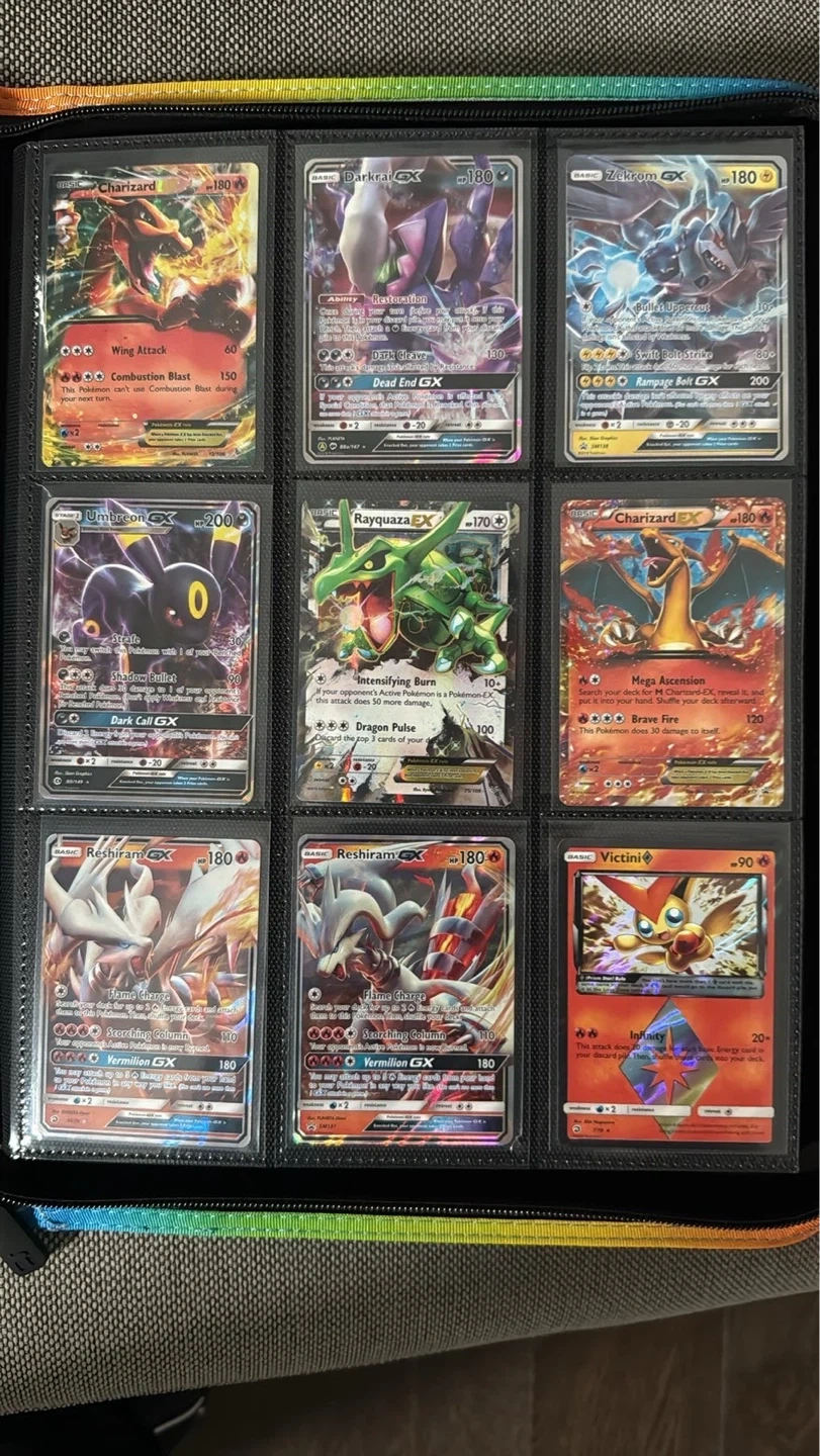 A collection of various Pokémon trading cards featuring different characters and rarities. Includes GX, EX, and other special cards. Great for collectors and players!