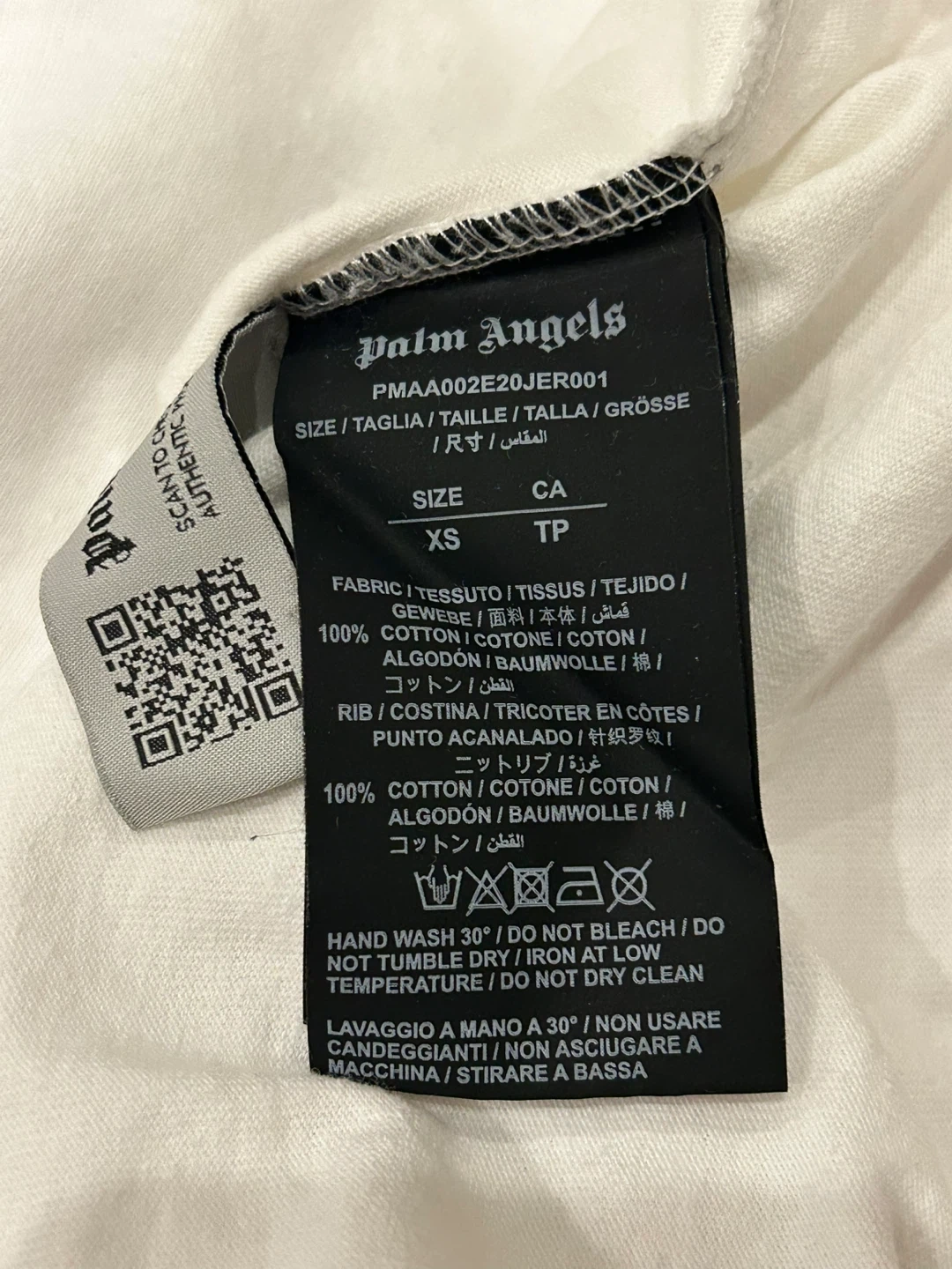 Selling a Palm Angels white t-shirt in size XS. It's in great condition and made of 100% cotton. Features the Palm Angels logo on the front and back. Perfect for casual wear!