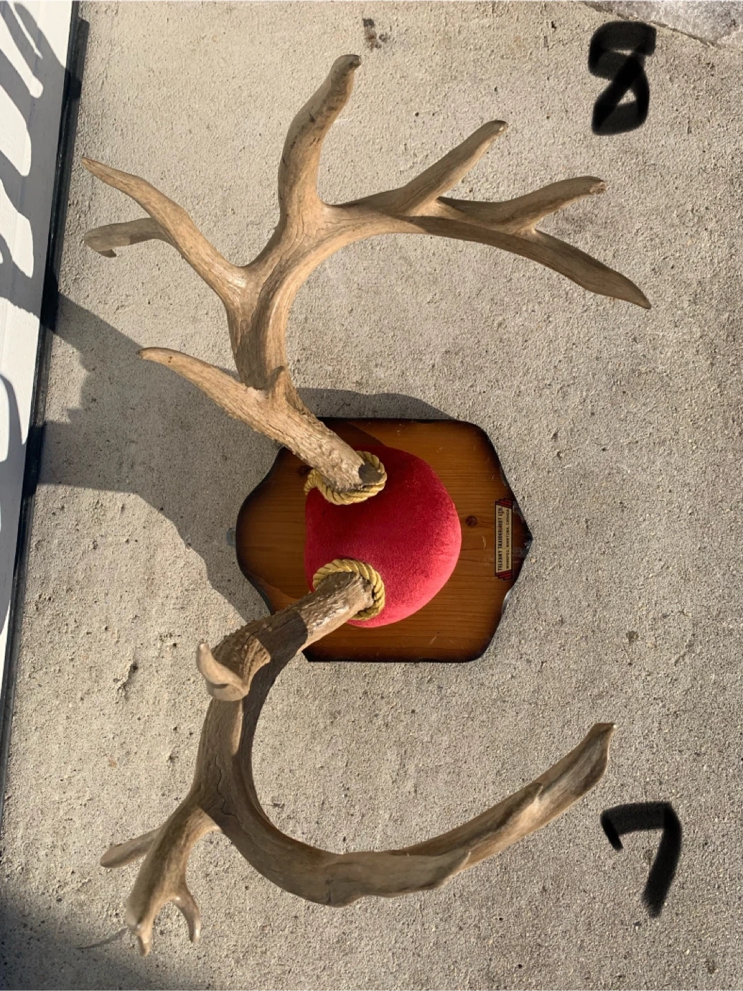 ANTLERS- 7/8 POINTS -VINTAGE- MOUNTED . Aprox. 21” wide. Very nice. Will look great in your den, man cave, cabin etc. $250. Pick up in SELKIRK, MB. Or possible meet to pick up.