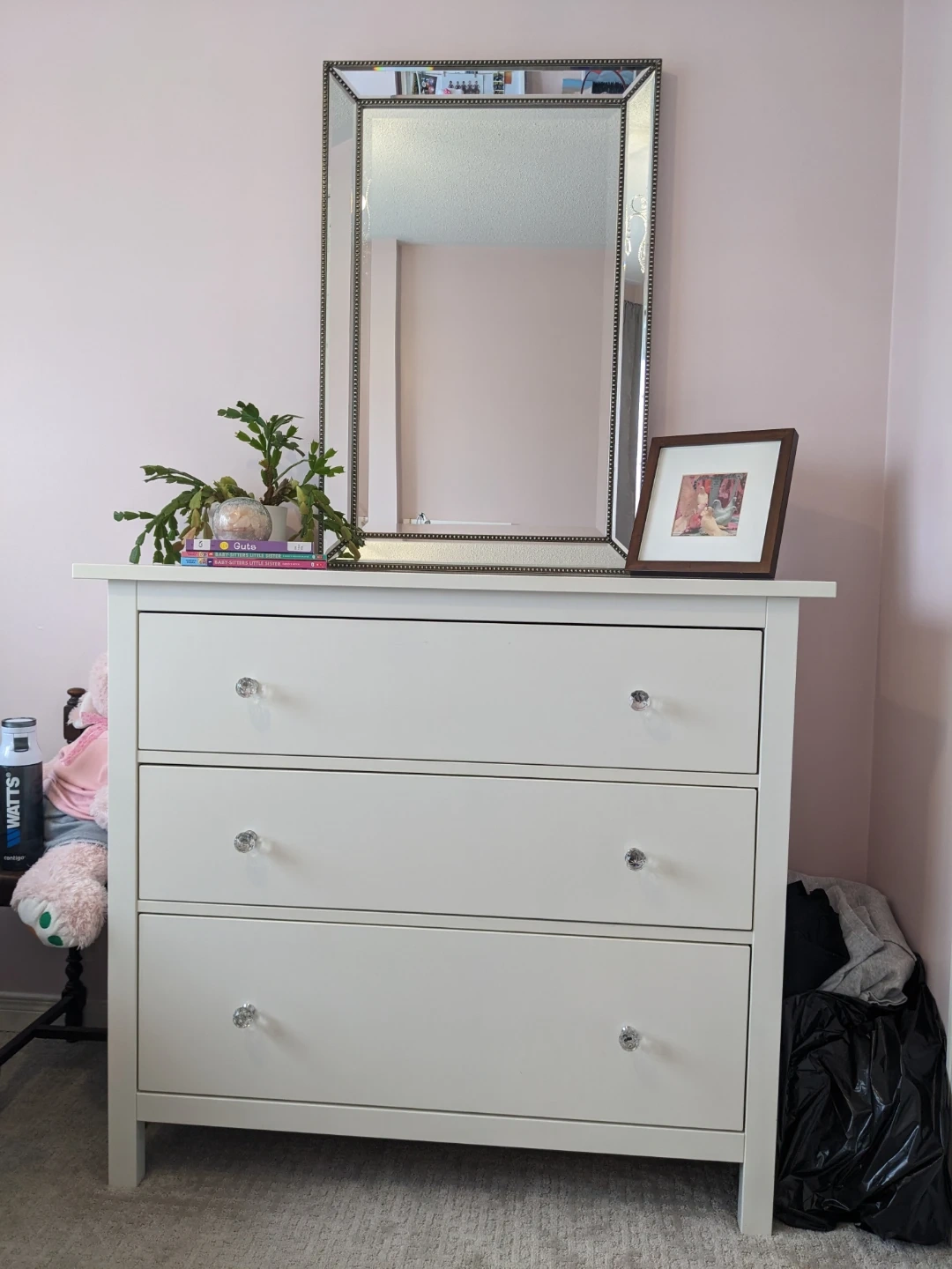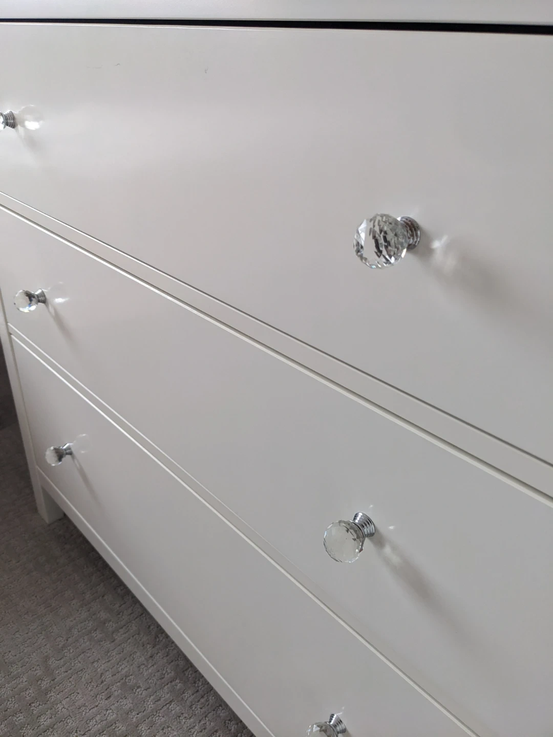 Stunning mirror and White 3-Drawer Dresser with Crystal Knobs