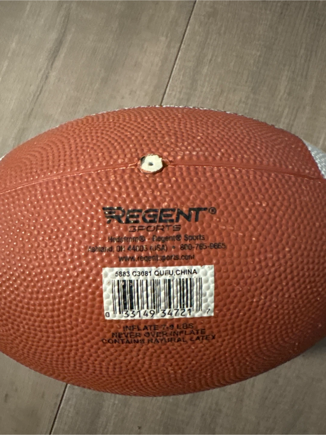 This is a Regent Sports official junior size football. It's made with a textured surface for a good grip. Inflatable to 4-6 lbs.