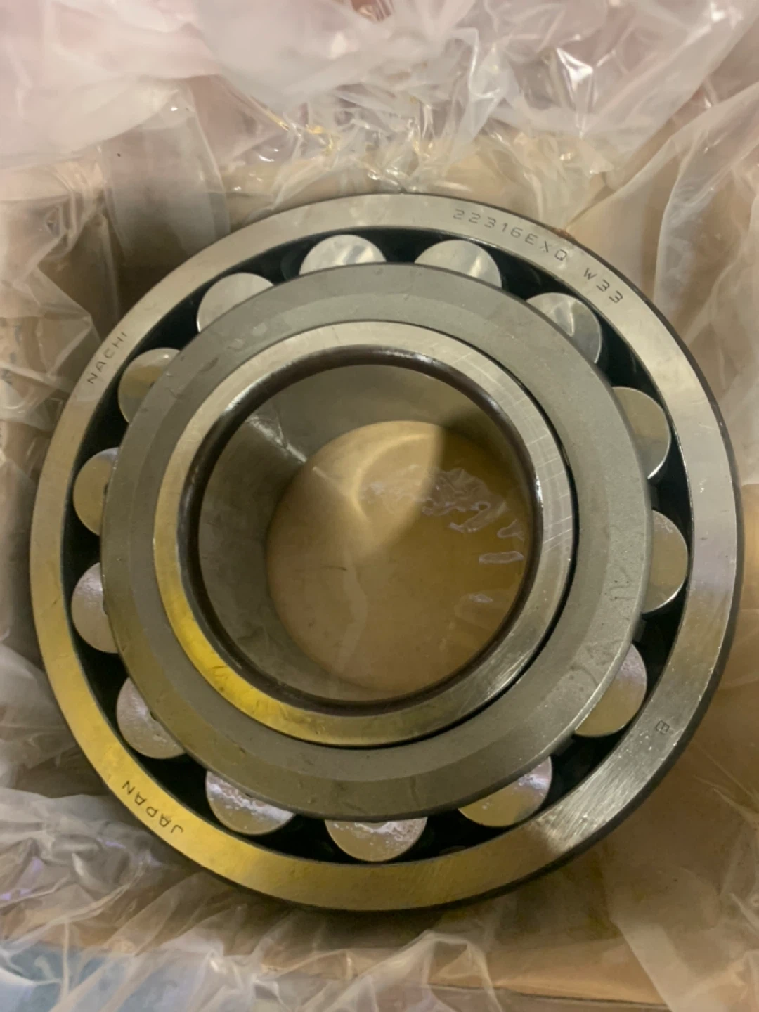 This is a Nachi 22316EXQ W33 spherical roller bearing. It's manufactured in Japan. This bearing is designed for heavy loads and demanding applications.