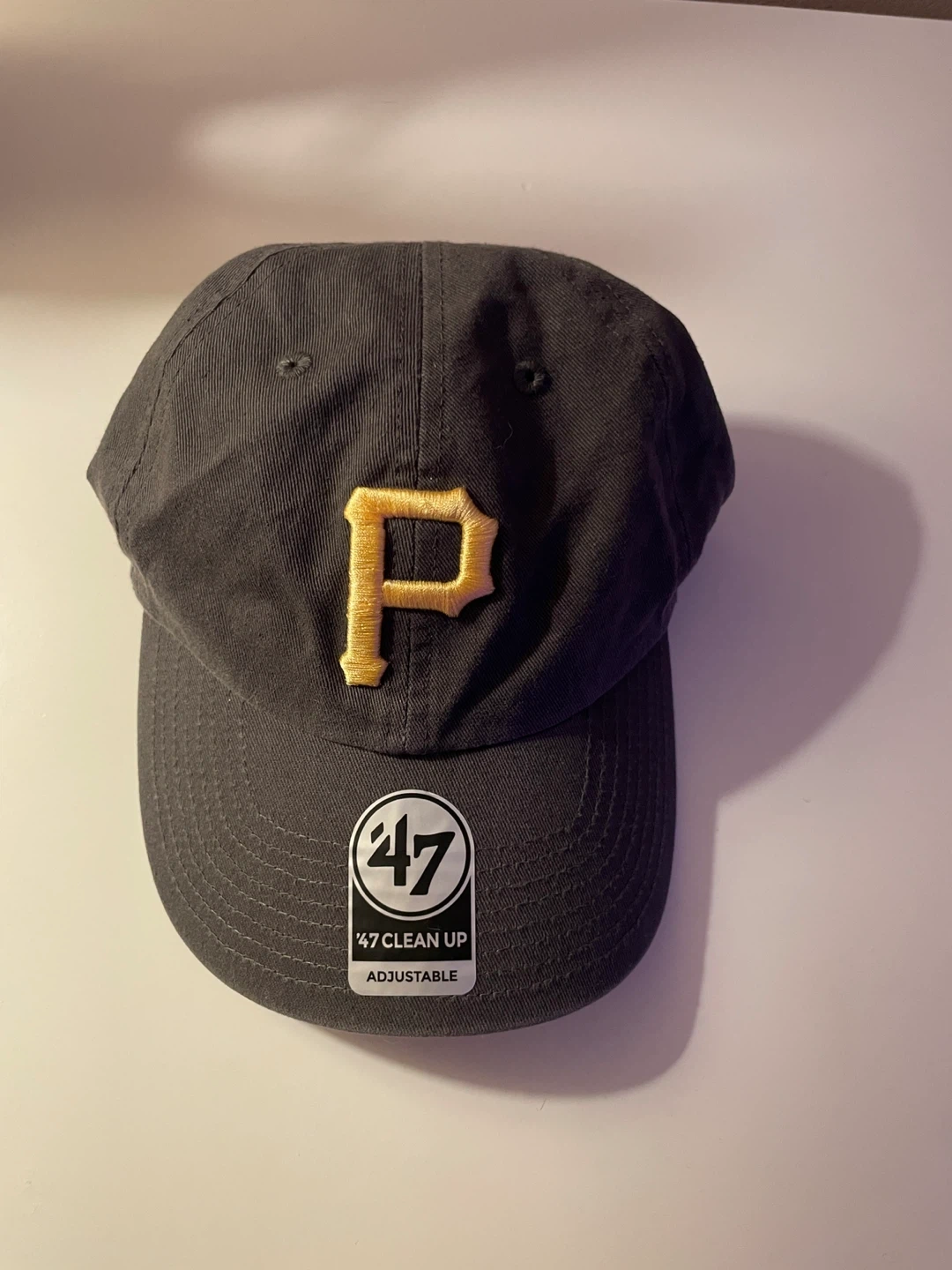 This is a 47 Brand Pittsburgh Pirates hat in charcoal. It's the MLB Pastel Pop '47 Clean Up style.