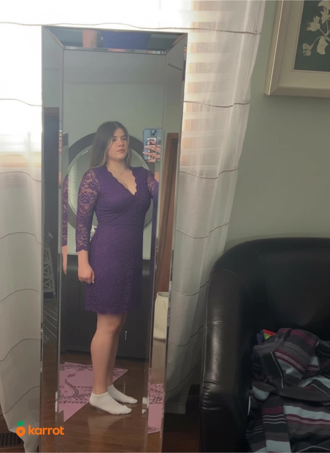 Selling a lovely purple lace dress. It's in great condition and perfect for a special occasion or a night out. The lace detailing adds a touch of elegance to the dress