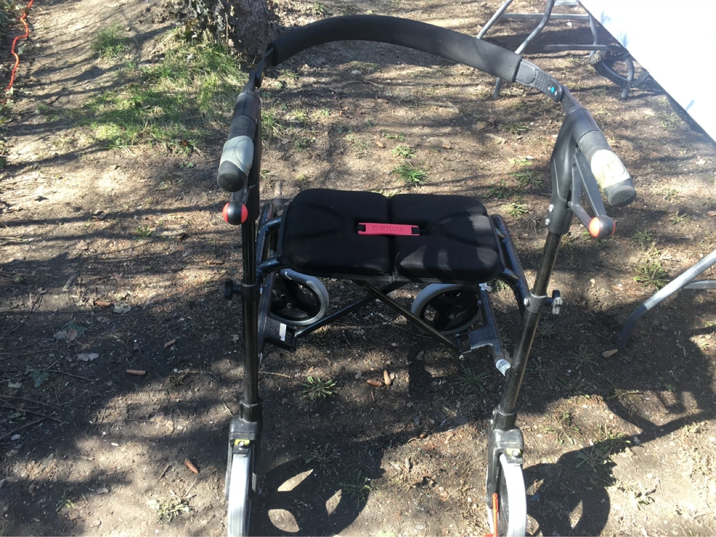 This Nexus 3-wheel walker provides stability and a place to rest. It features adjustable handles for a comfortable fit. This walker is helpful for individuals needing mobility assistance.