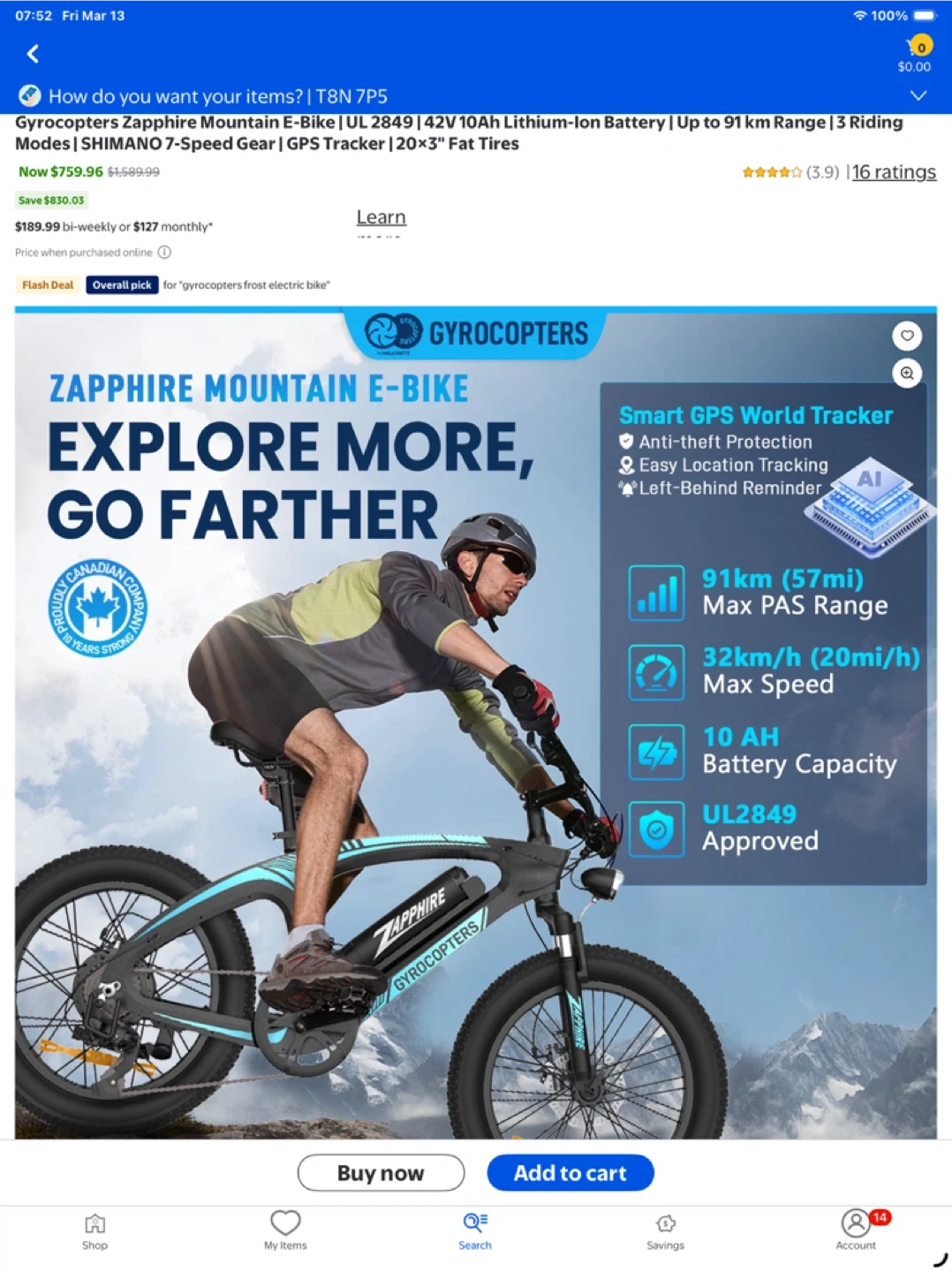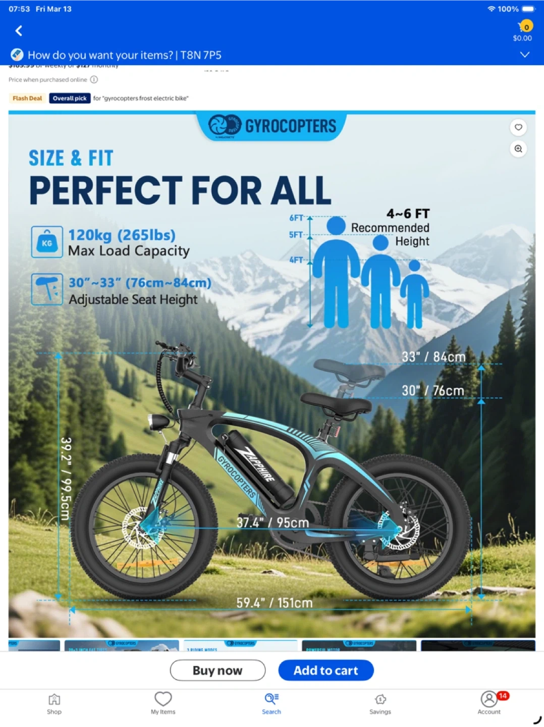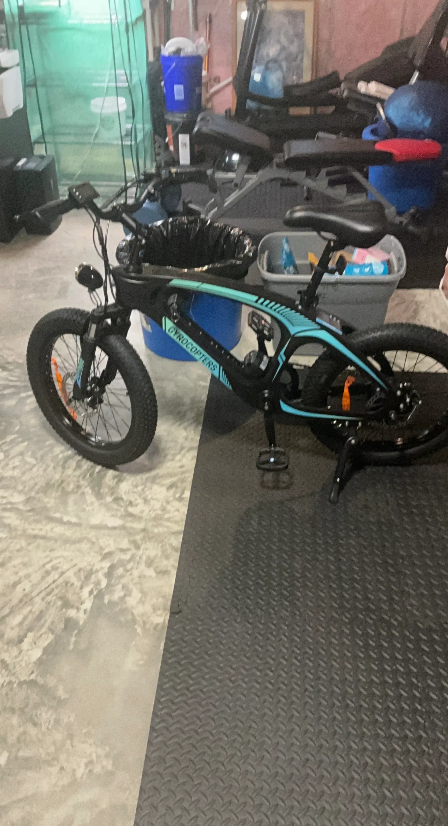 This is a GYROCOPTERS electric fat bike. It features front and rear dual disc brakes and a headlight. The recommended rider height is 4-6 ft.We purchased this Amazing bike over the winter, unfortunately we didn’t assemble it until recently, and found that it was smaller than what we wanted wheels 20 inch, unfortunately the window to return it on Amazon was long past. I would say that it is more suitable for someone’s height maximum 5ft 3 inch range.