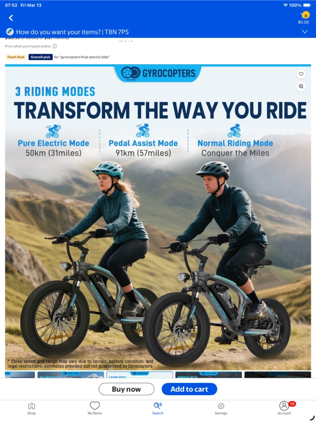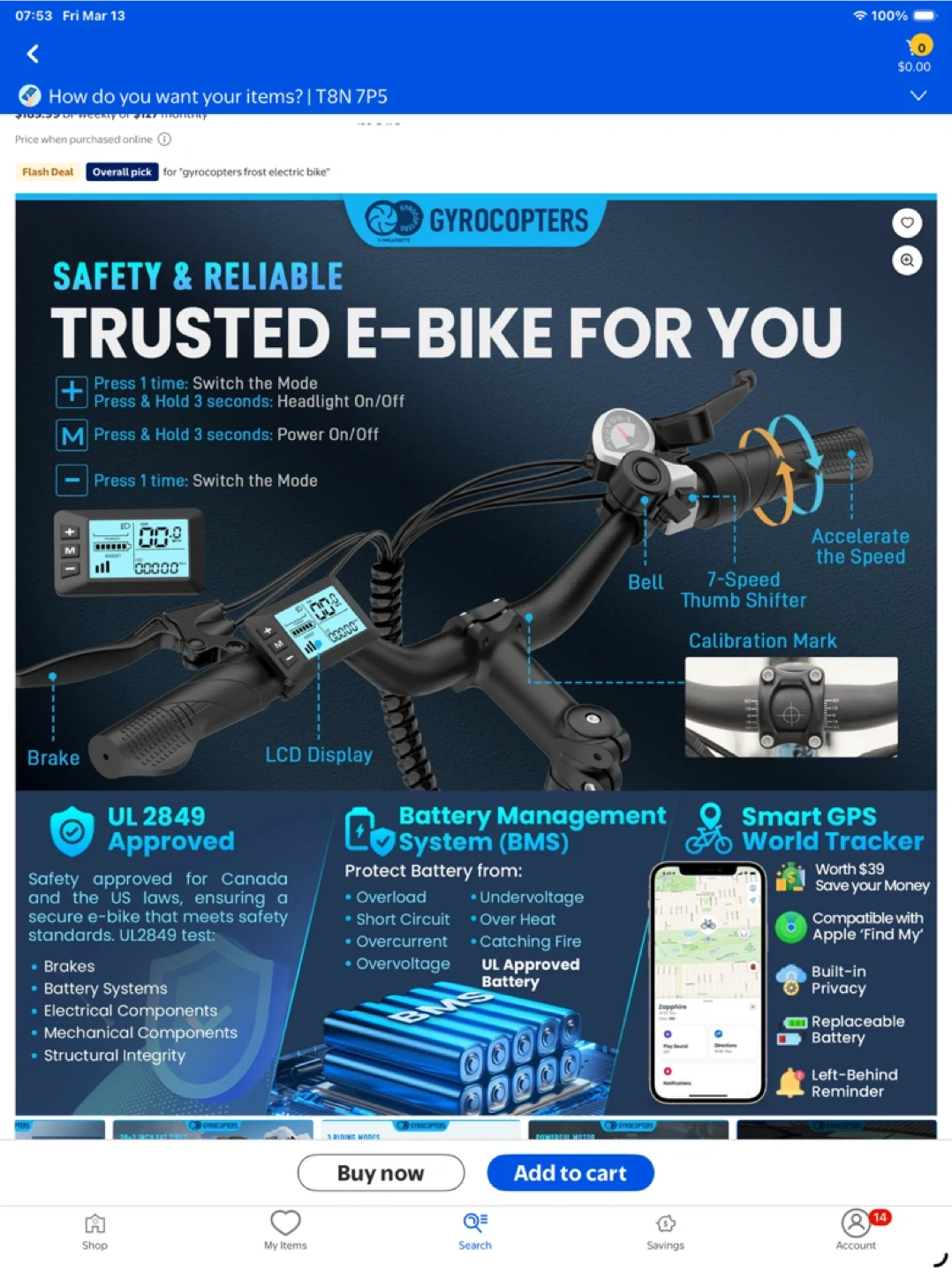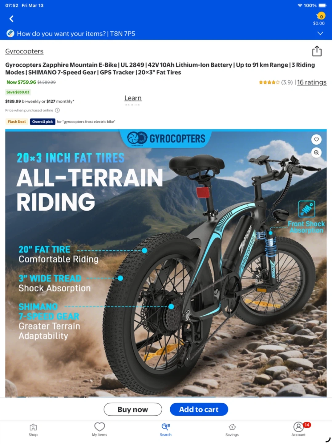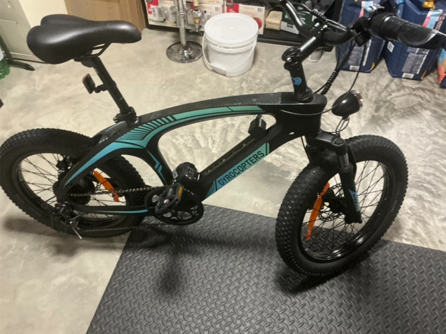 This is a GYROCOPTERS electric fat bike. It features front and rear dual disc brakes and a headlight. The recommended rider height is 4-6 ft.We purchased this Amazing bike over the winter, unfortunately we didn’t assemble it until recently, and found that it was smaller than what we wanted wheels 20 inch, unfortunately the window to return it on Amazon was long past. I would say that it is more suitable for someone’s height maximum 5ft 3 inch range.