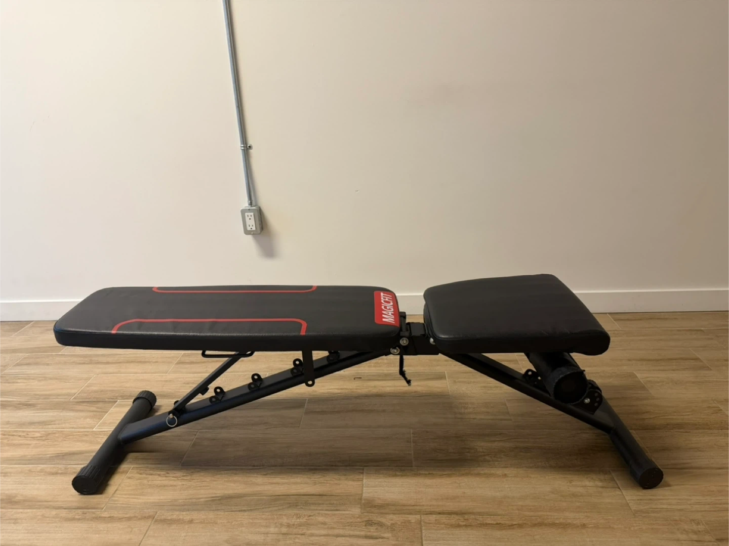This Magicfit adjustable workout bench is a great addition to your home gym. It's designed for various exercises and can be adjusted to different positions. The padding is comfortable and durable, supporting your workouts. Open to offers