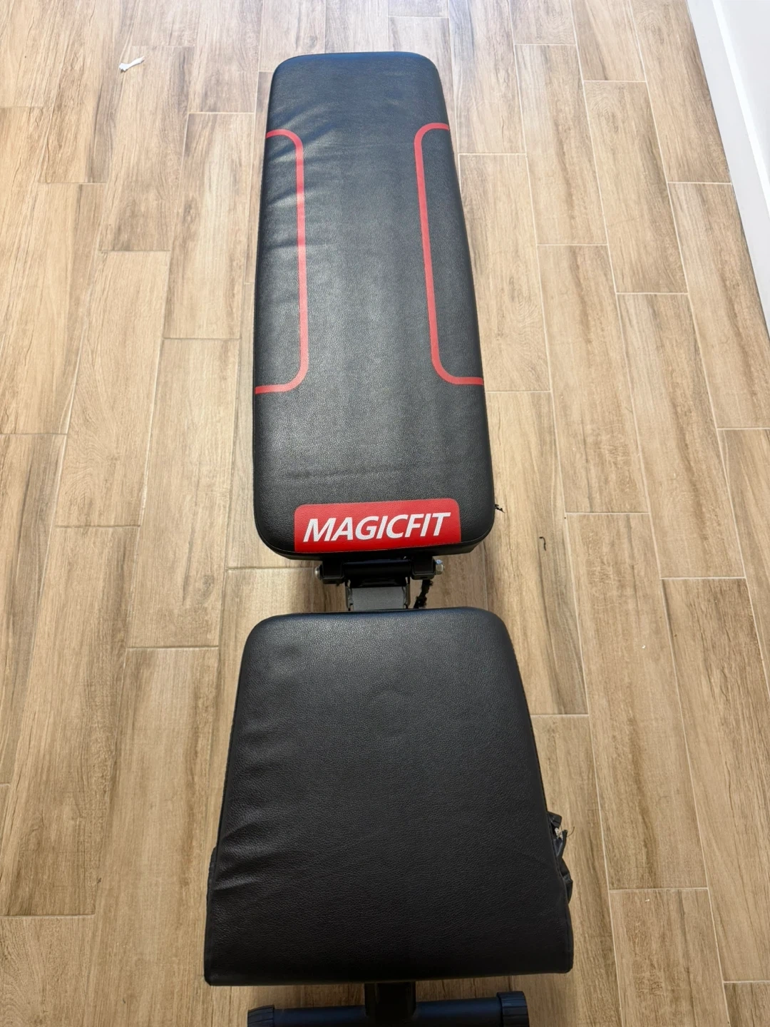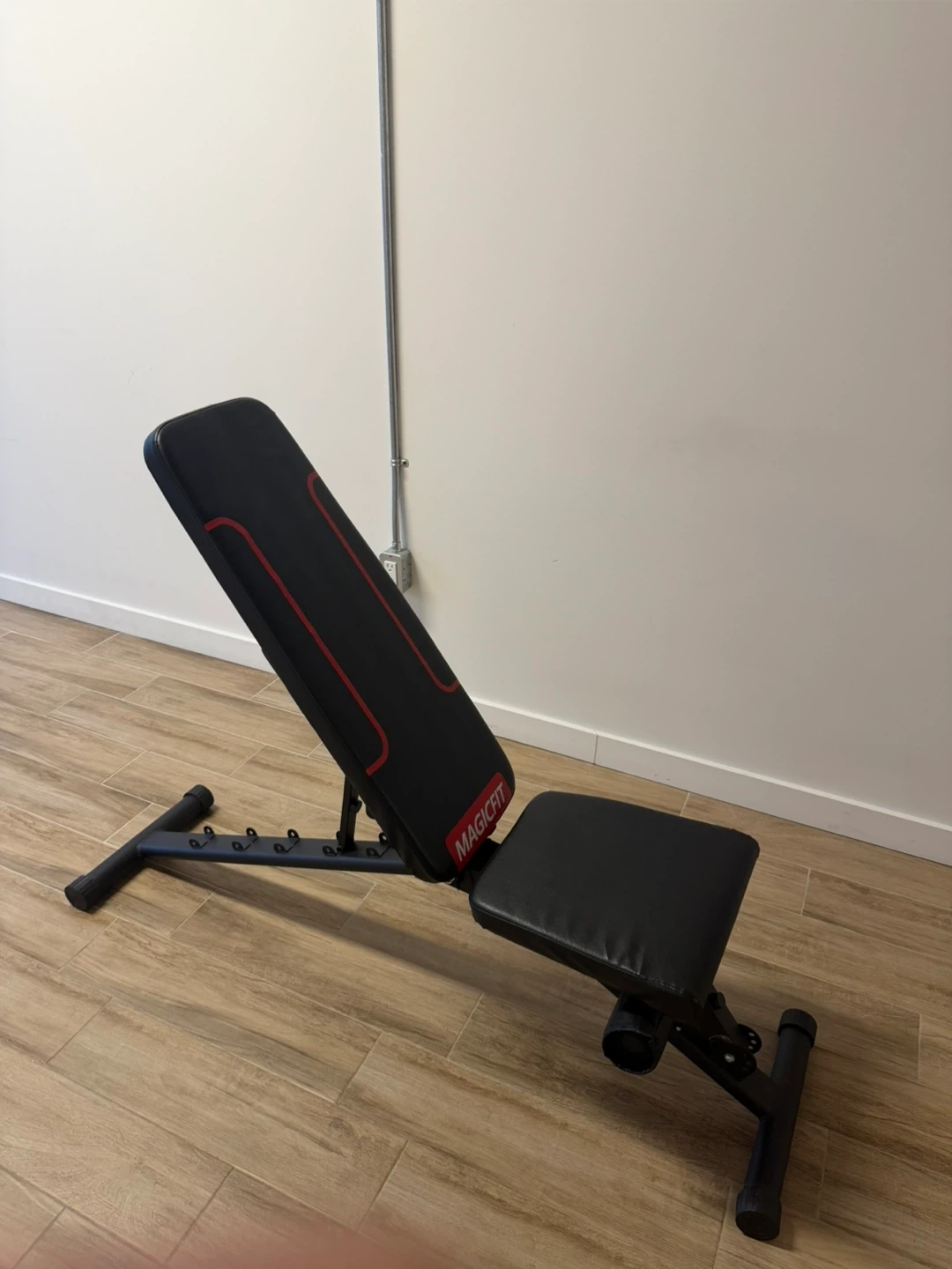 This Magicfit adjustable workout bench is a great addition to your home gym. It's designed for various exercises and can be adjusted to different positions. The padding is comfortable and durable, supporting your workouts. Open to offers