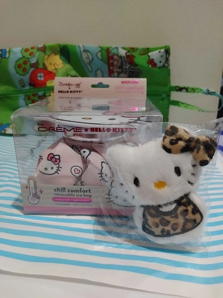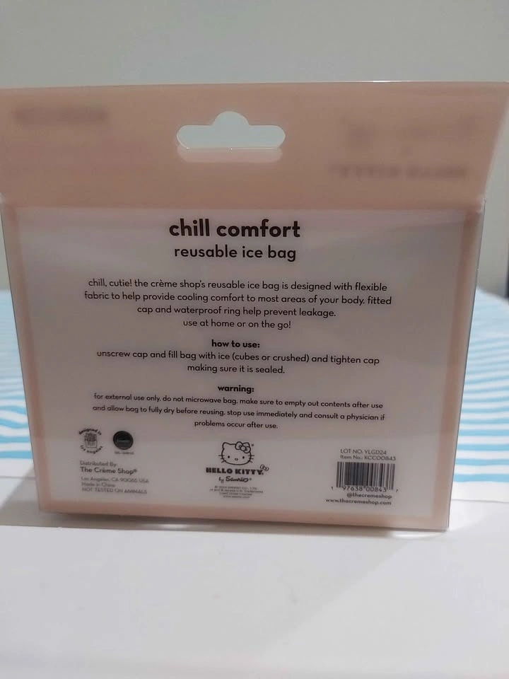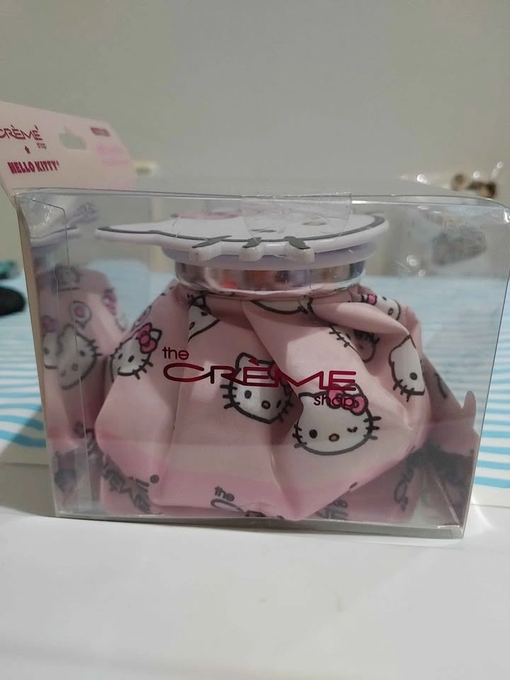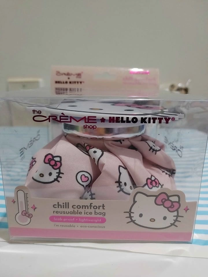 Item is a Crème Shop reusable ice bag featuring Hello Kitty.