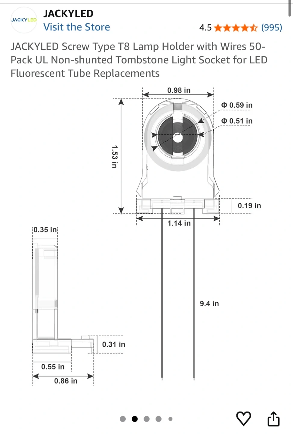 This is a 50-pack of JACKYLED screw-type T8 lamp holders with wires. Used some but not many. They are non-shunted tombstone light sockets designed for LED fluorescent tube replacements. This pack is great for upgrading multiple light fixtures to LED technology.