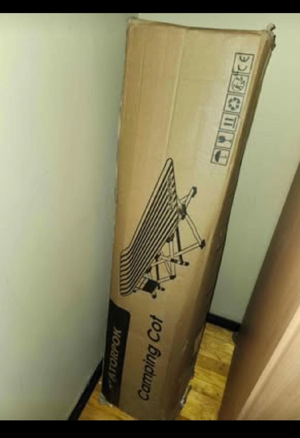 Selling a brand new ATORPOK Camping Cot, still in its original box! The box indicates measurements of 27XX17.5X105CM and a net weight of 7.4KG. Perfect for your next outdoor adventure