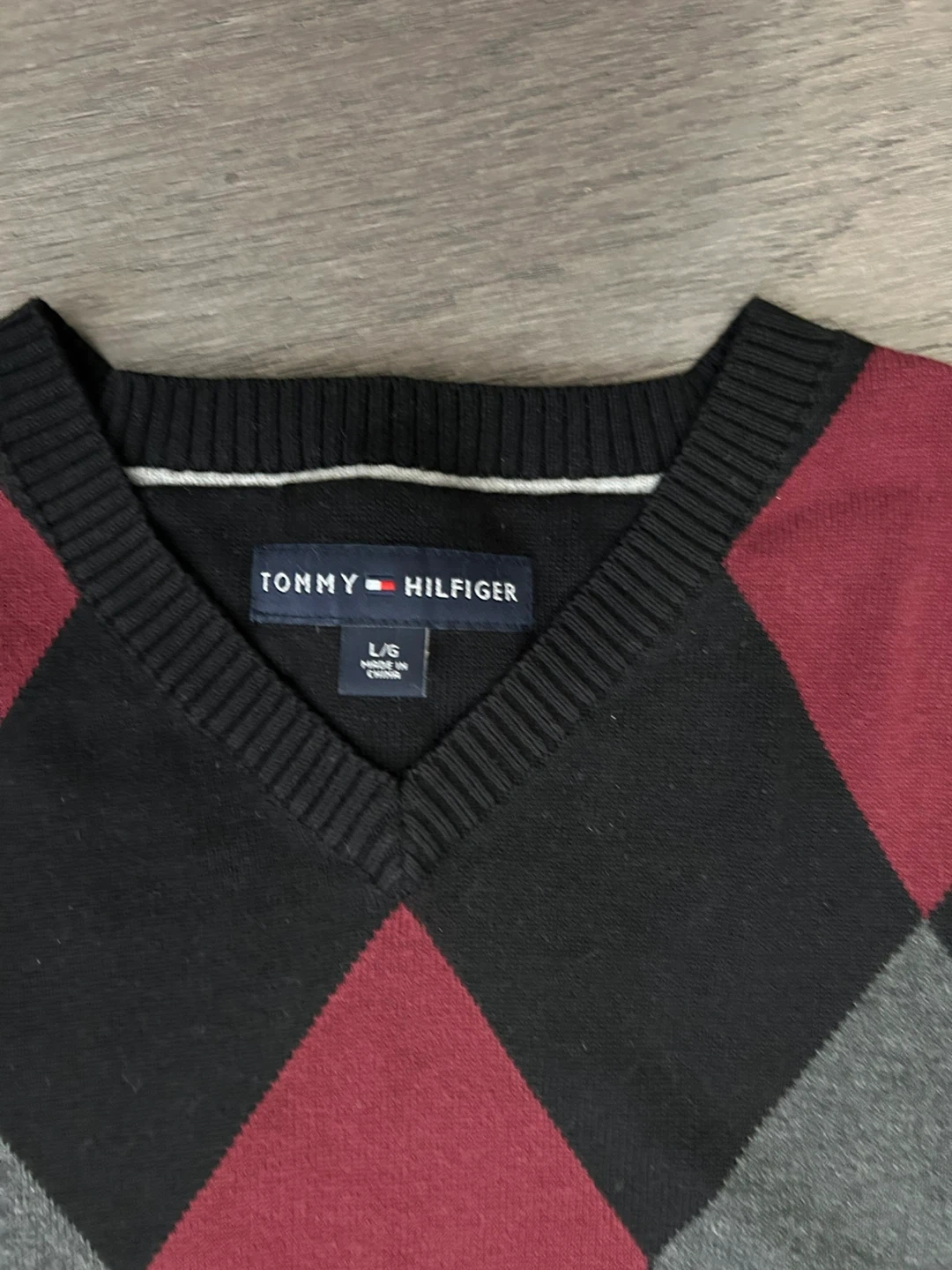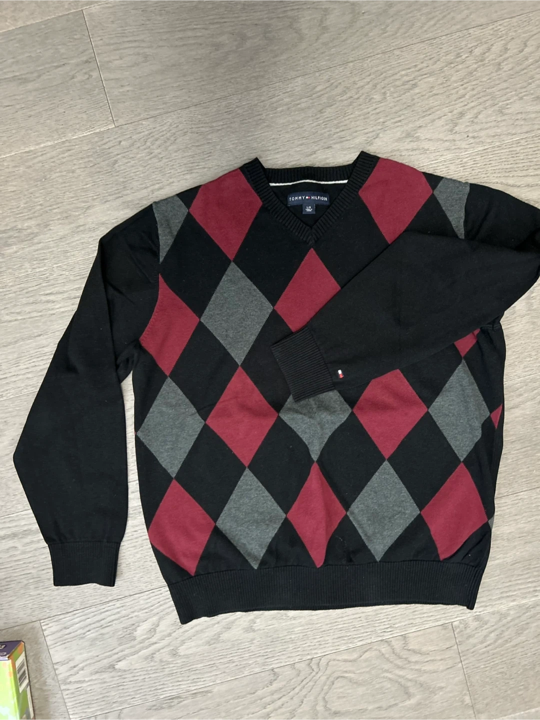 Tommy Hilfiger Men’s Argyle V-Neck Sweater, size large