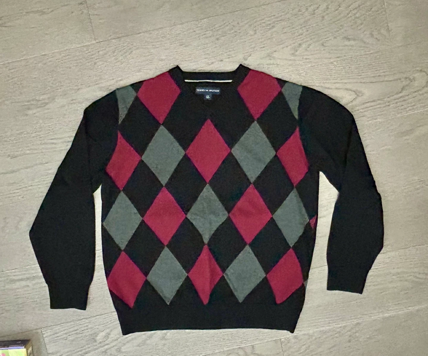 Tommy Hilfiger Men’s Argyle V-Neck Sweater, size large