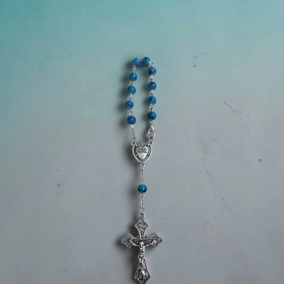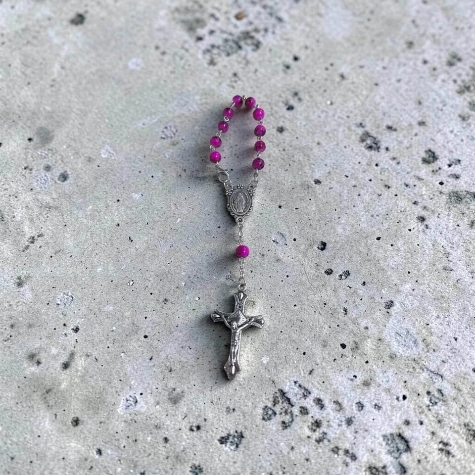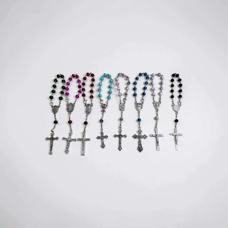 Each rosary is finished with a petite crucifix and a delicate medal. Its compact size rests easily in the hand, pocket, or purse—perfect for prayer on the go, thoughtful gifting, or keeping close as a small reminder of faith.