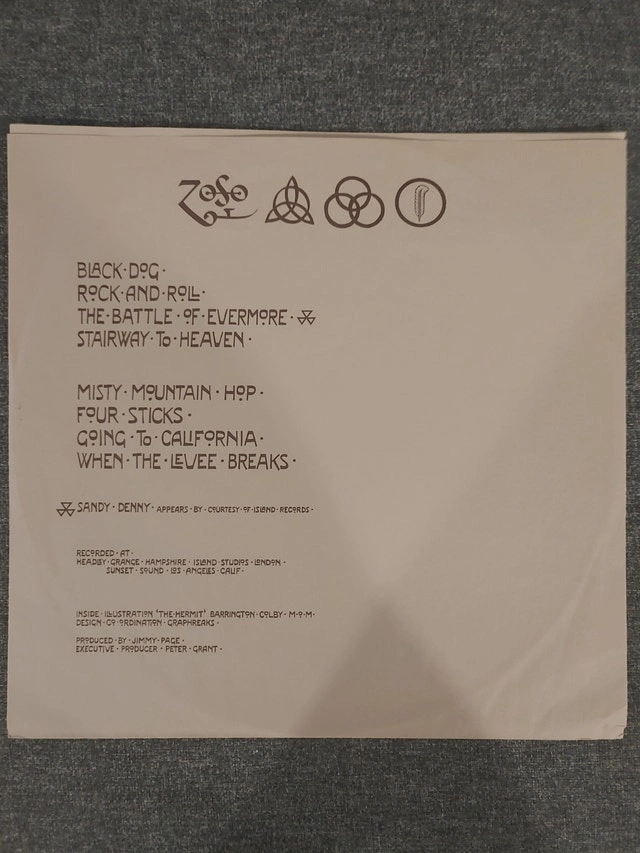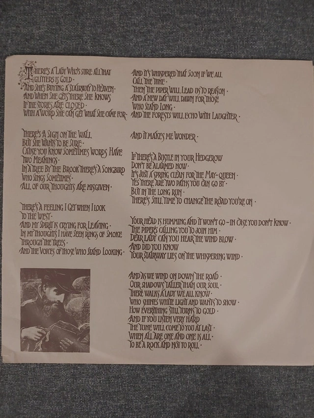 Comes with the original inner sleeve featuring the lyrics to "Stairway to Heaven."